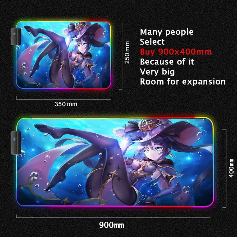 Ударный коврик для мыши Genshin Rgb Xl, большой коврик для мыши, игровые аксессуары для мыши, аксессуары для аниме Otaku, длинная подкладка, светодиодный коврик для компьютера