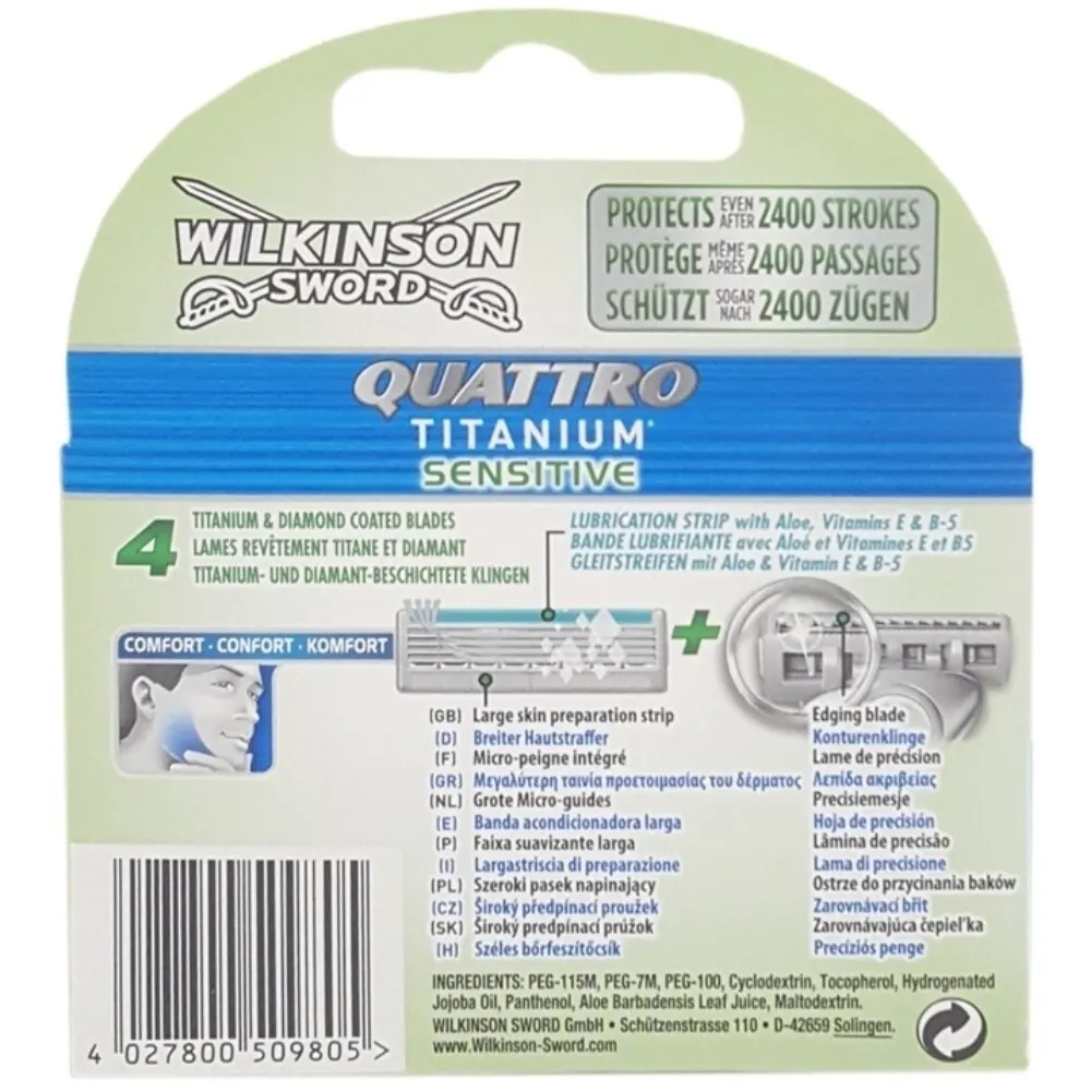 Бритва Wilkinson Sword Quattro titanium sensitive, 1 упаковка4 шт., бесплатная доставка
