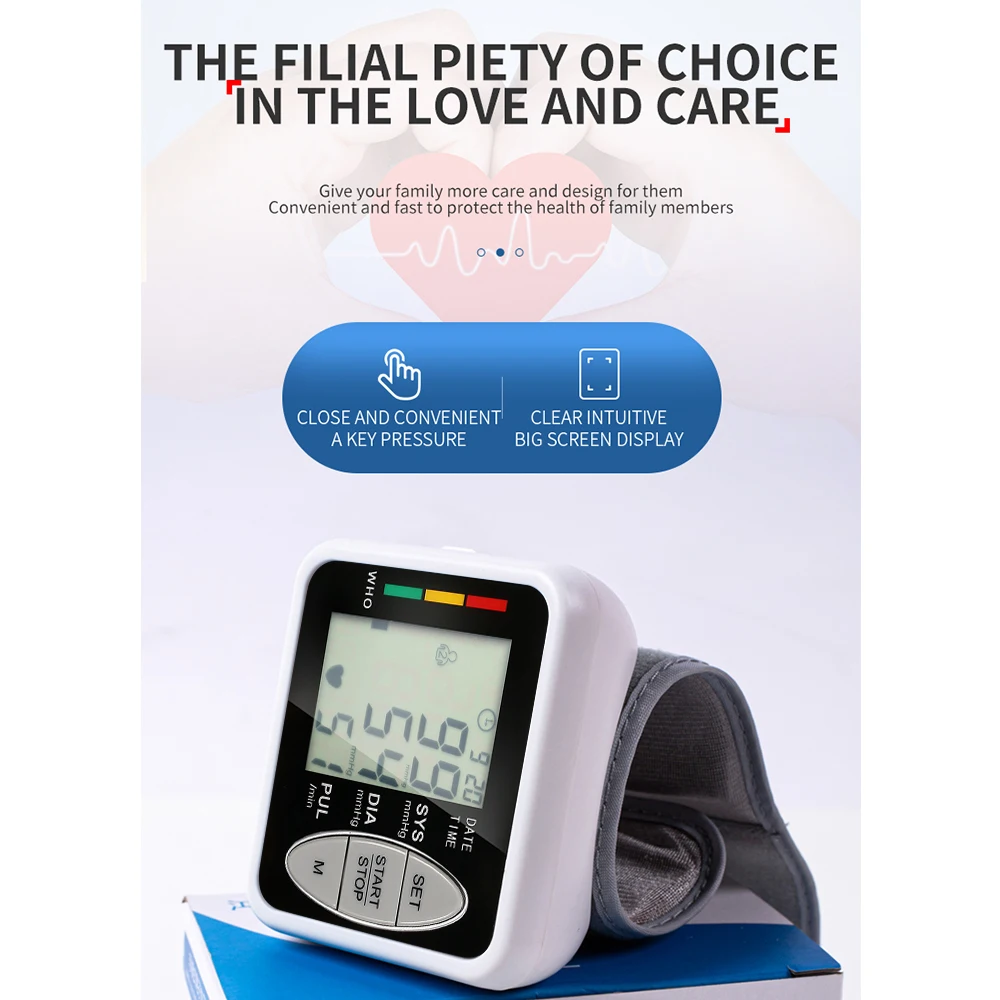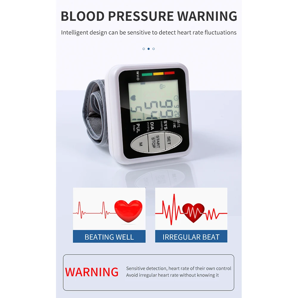 Портативный автоматический тонометр на запястье, электронный сфигмоманометр, монитор артериального давления, ЖК-дисплей, монитор сердечного ритма, забота о здоровье