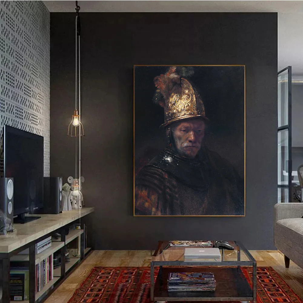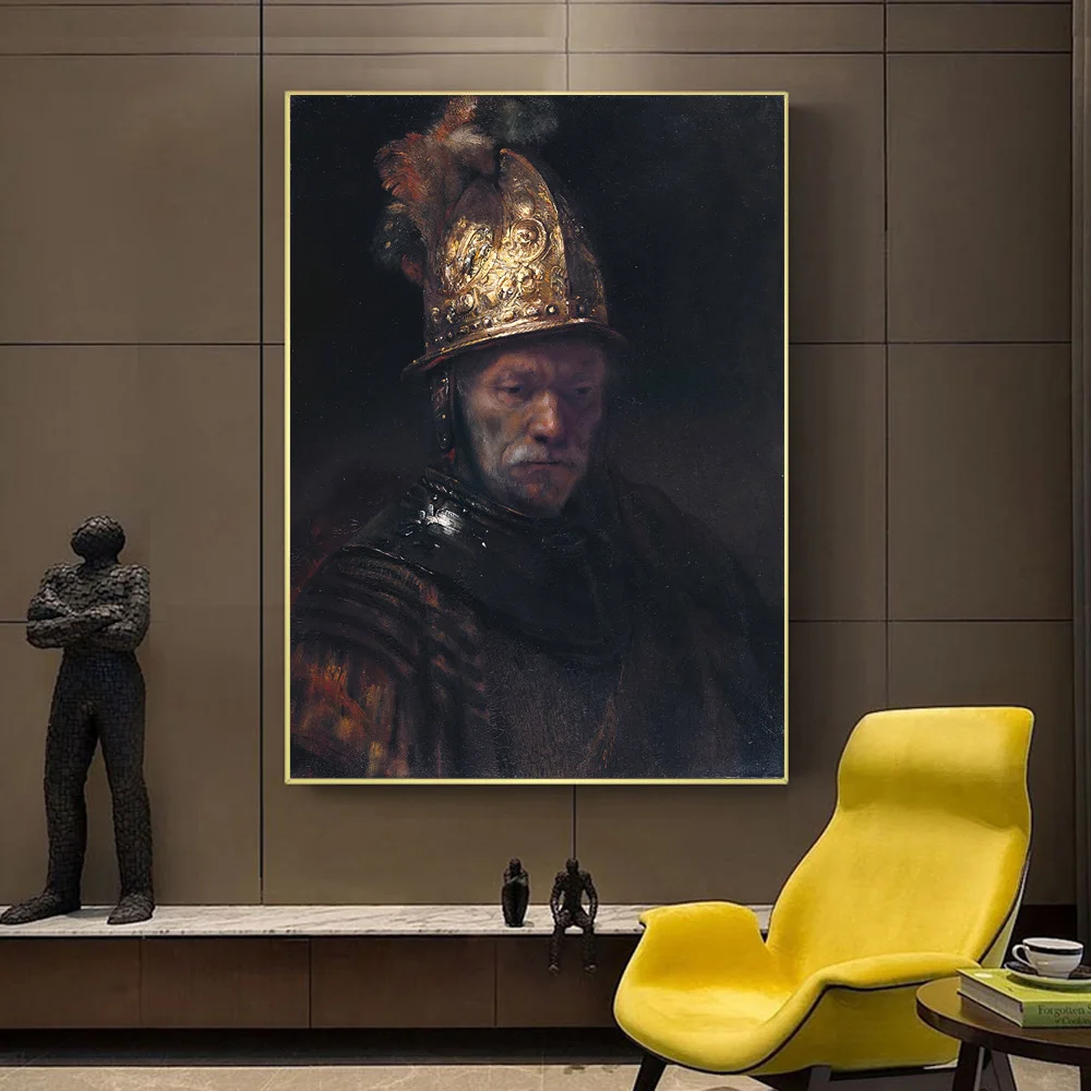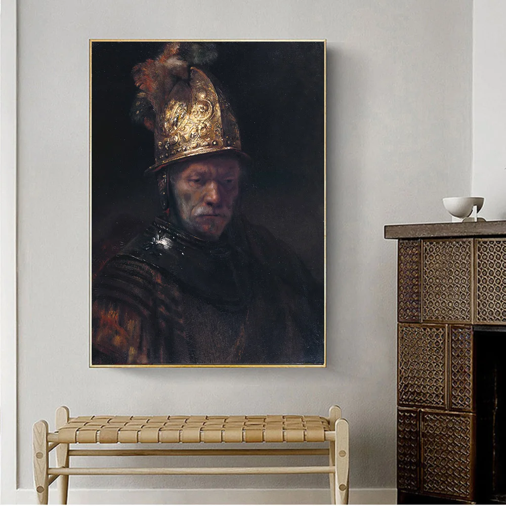 Картина на холсте с изображением Человека с золотым шлемом Рембрандта, картина с изображением известной фигуры, Настенная картина для гостиной, постер для украшения дома