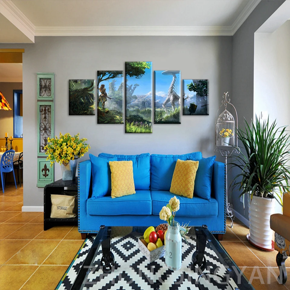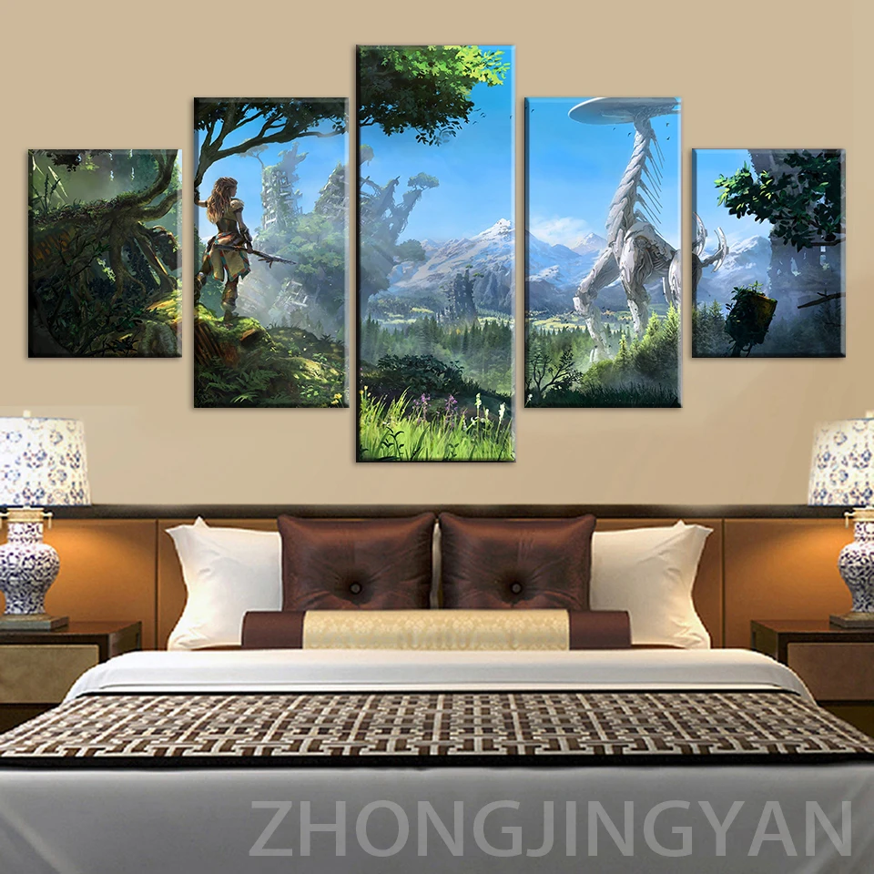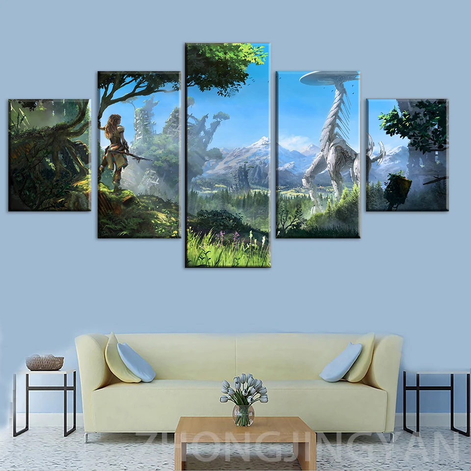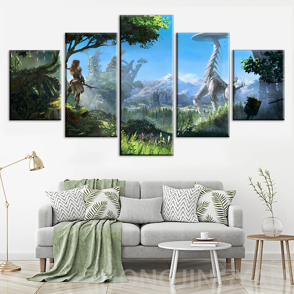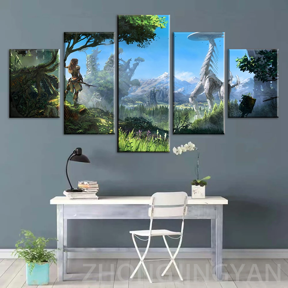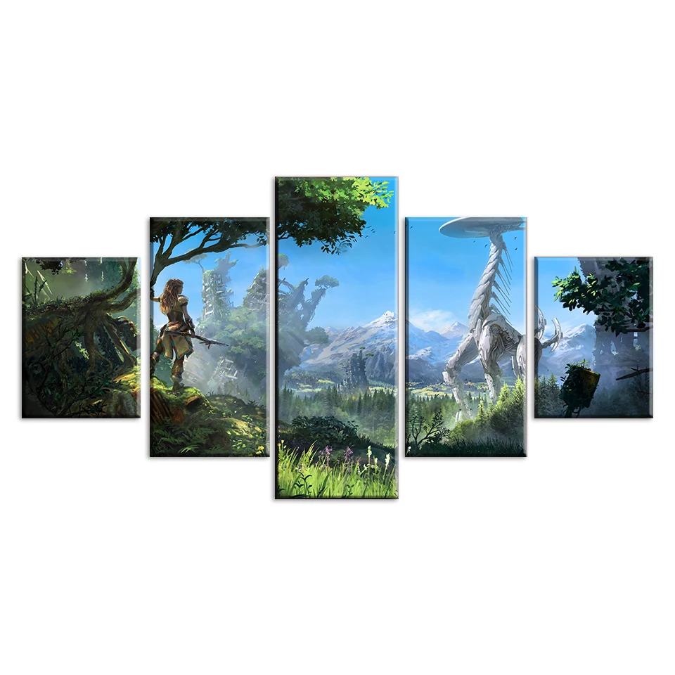 Модульные настенные картины с принтом для домашнего декора, 5 шт., картины Horizon Zero Dawn, настенное искусство для гостиной, холст, плакат в рамке