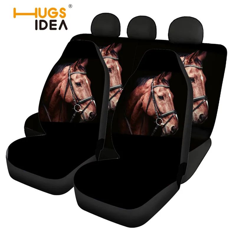 HUGSIDEAAnimal дизайн Crazy Horse удобные автомобильные чехлы на сиденья для большинства автомобилей Нескользящие передние и задние автомобильные чехлы полный комплект