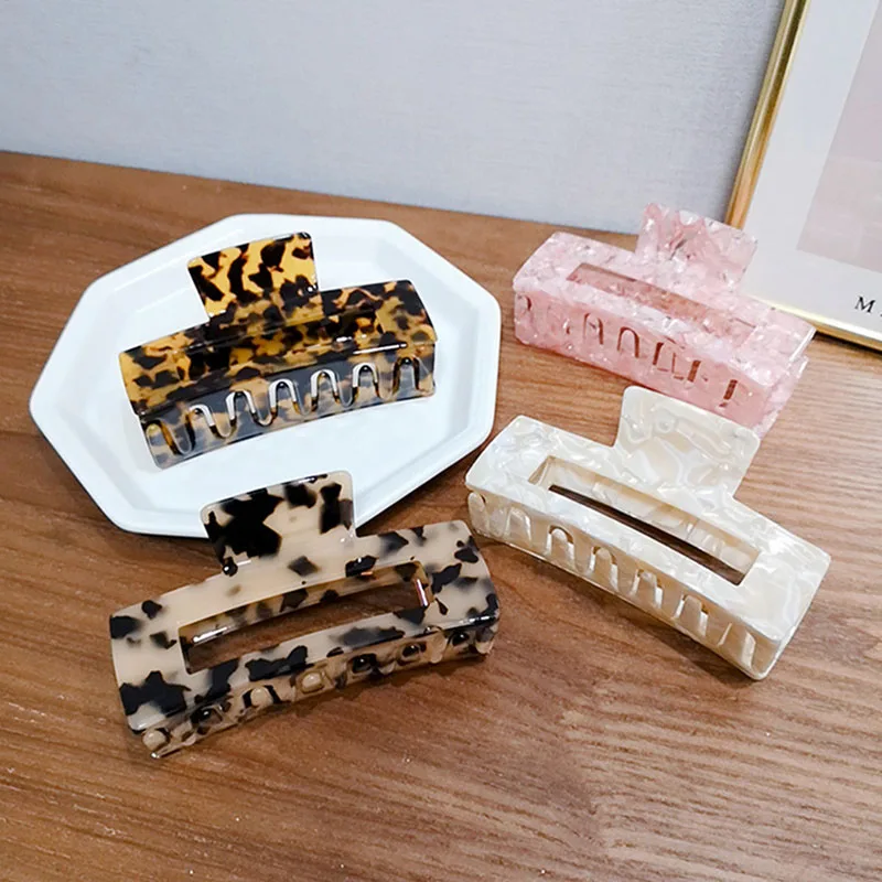 Корейские заколки для волос большого размера для женщин полые геометрические ацетатные заколки для волос Леопардовый мраморный принт заколки для волос аксессуары для волос