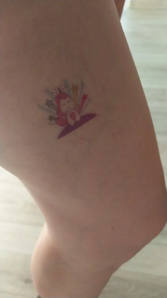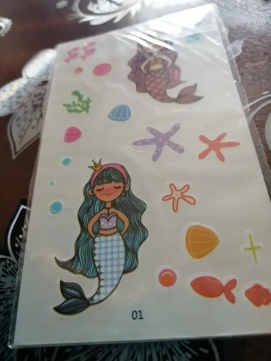 классные татушки. дочь в восторге. переводятся легко. влажный диск накладываю на несколько секунд и все ровно приклеивается. держатся долго, но при желании можно мылом и мочалкой быстро оттереть. рекомендую.