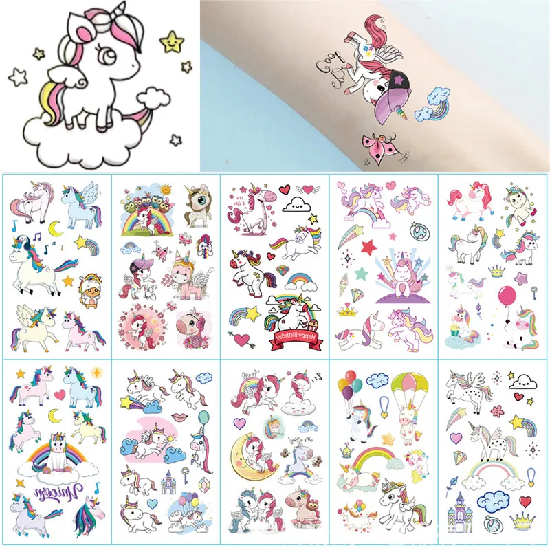 10 шт., милые Цветные татуировки для лица, временные татуировки для детей, наклейки для тела, татуировки для детей, безопасные татуировки, Детские татуировки