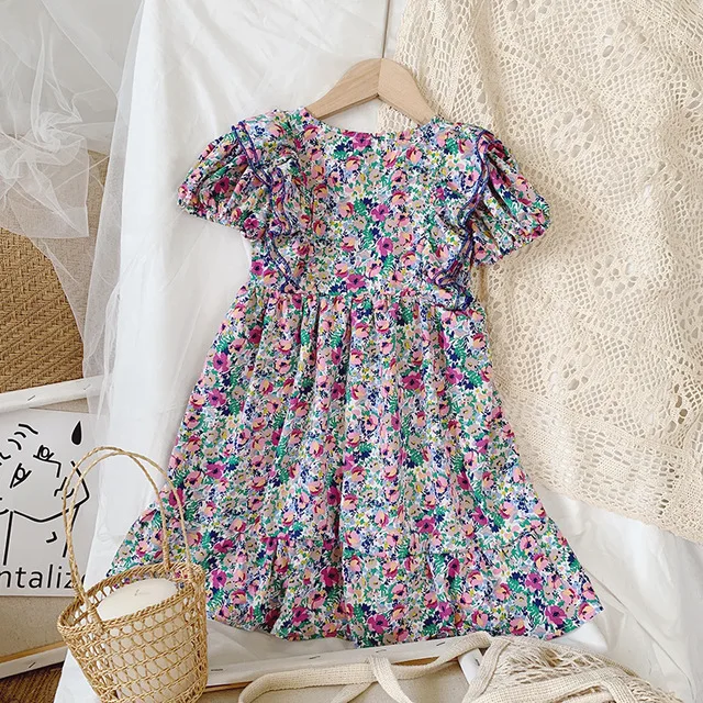 2021 Летнее цветочное платье для девочек, платье для малышей с граффити, детские костюмы, школьная форма для девочек, детские наряды, пляжная одежда