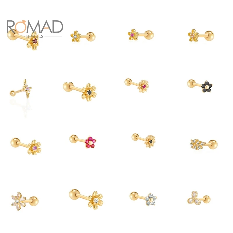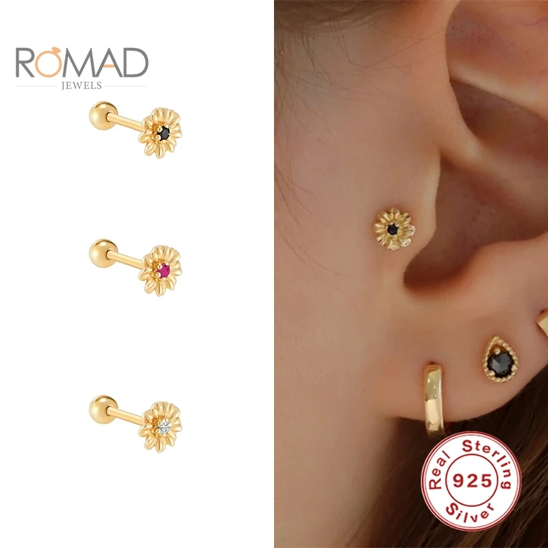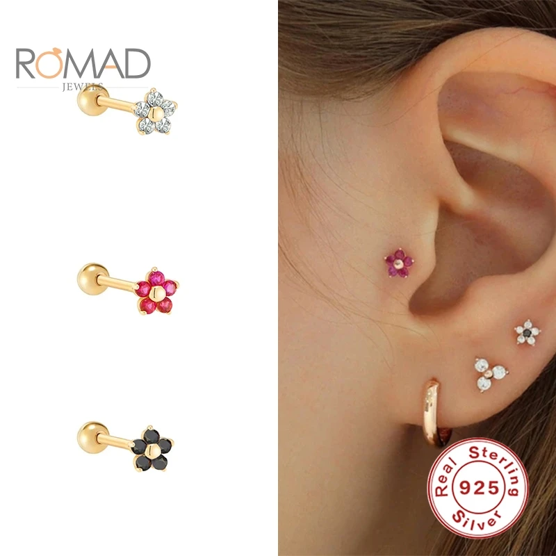 ROMAD Модные женские ювелирные изделия с бриллиантами нить пирсинг фиолетовый черный циркон серьги мини 925 стерлингового серебра серьги-гвоздики Brincos, можно носить