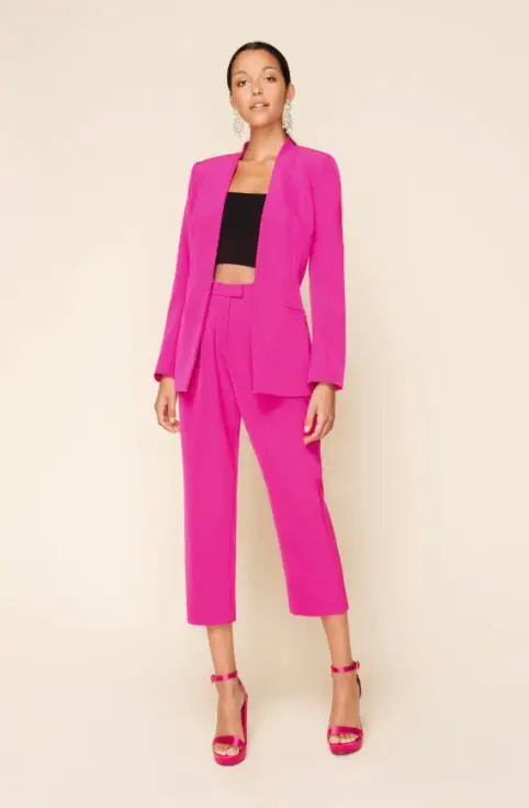 Женские однобортные костюмы цвета фуксия, блейзер и брюки, комплект костюмов, костюм с длинным рукавом, женские костюмы с пиджаком, Женский костюм на заказ