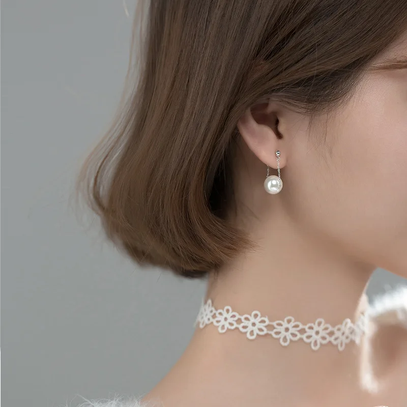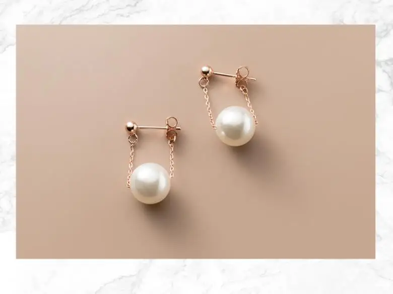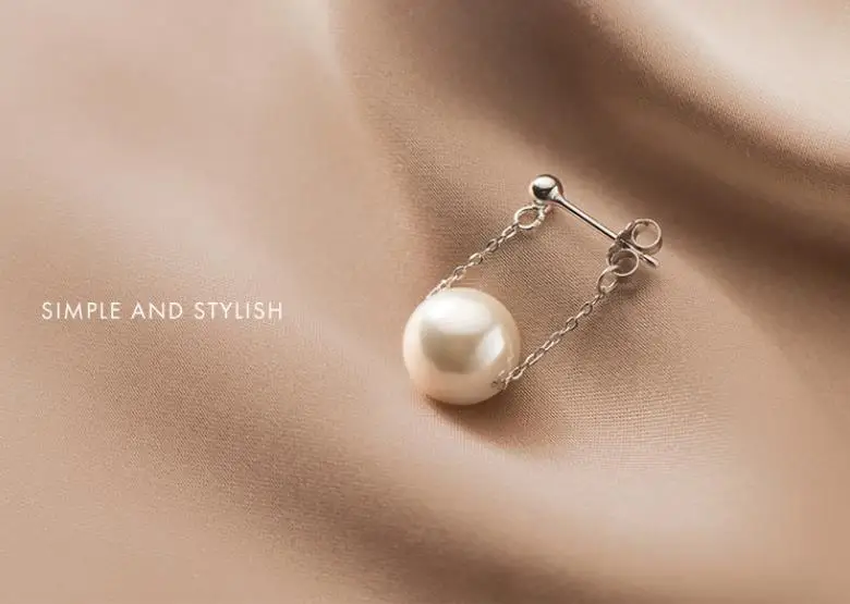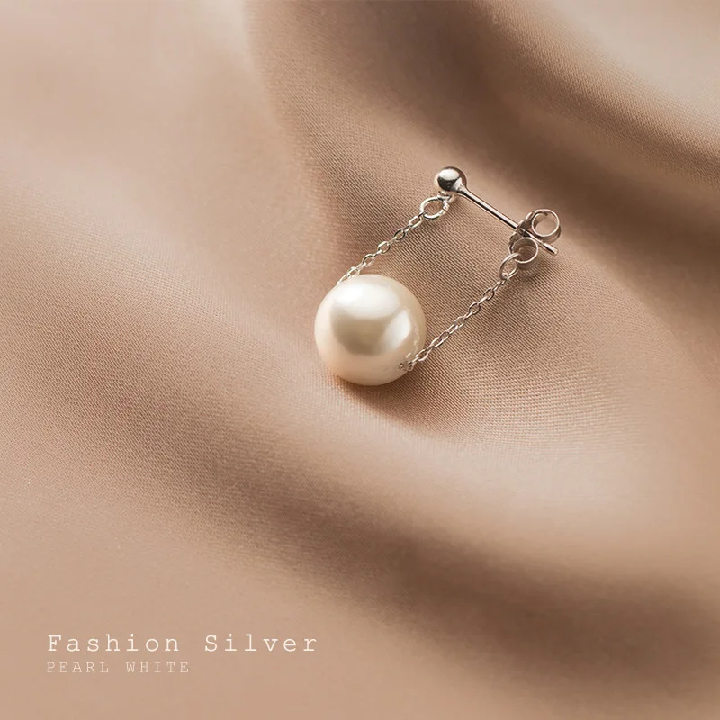 100% 925 стерлингового серебра тонкая цепочка задняя Висячие серьги для женщин и девочек, мам в виде ракушки искусственный жемчуг серьги подарок