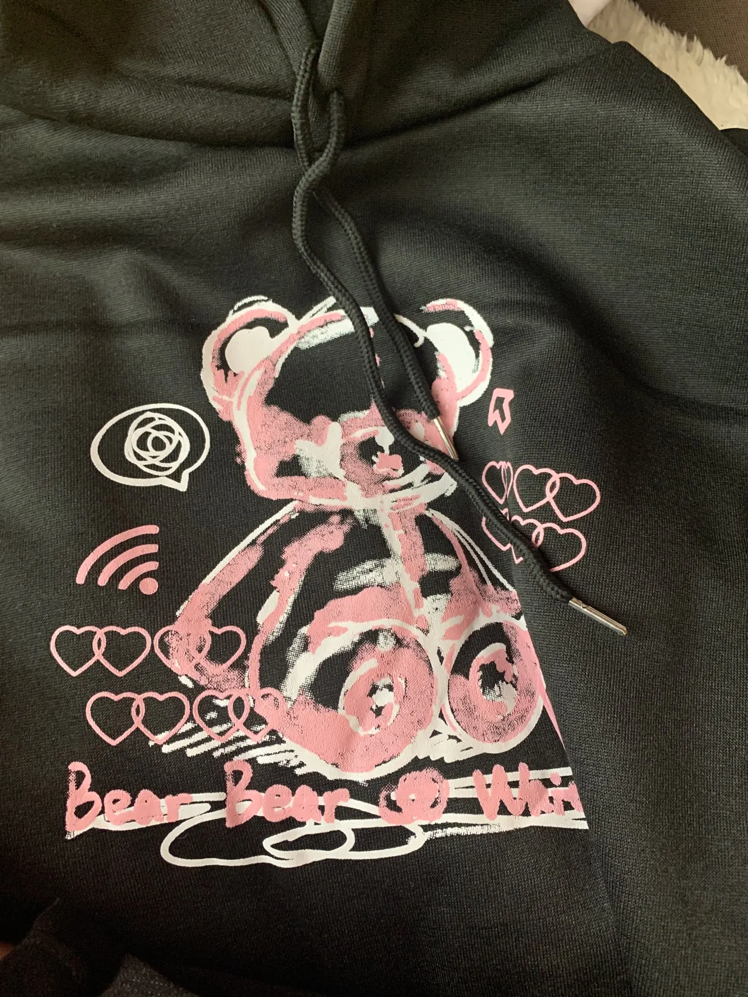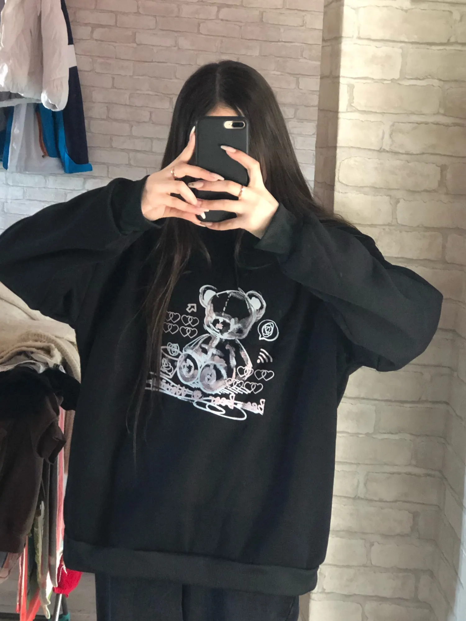Корейские женские толстовки с изображением медведя ольччан, свободные уличные Топы в стиле хип-хоп, винтажные повседневные в стиле Харадзюку, новая женская одежда