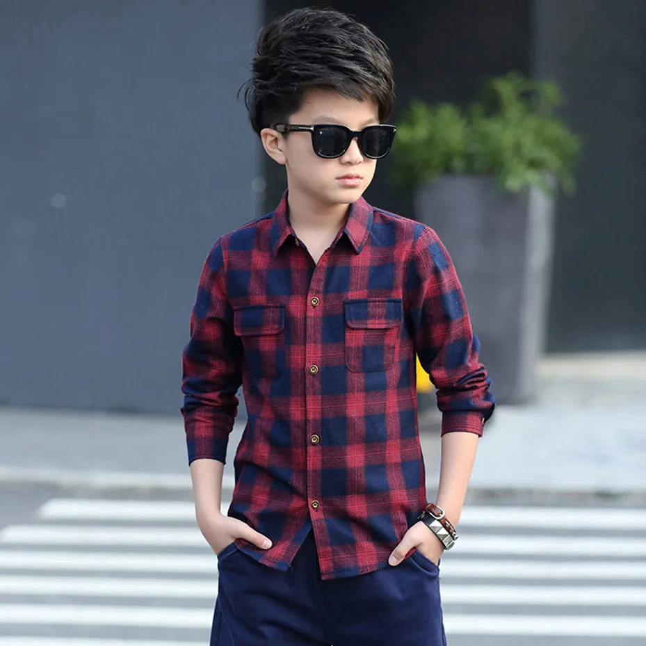Рубашка с длинными рукавами для мальчиков, школьная рубашка для мал...