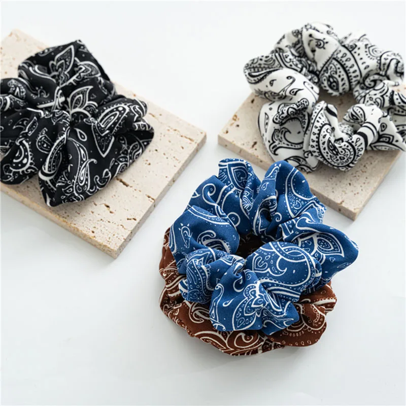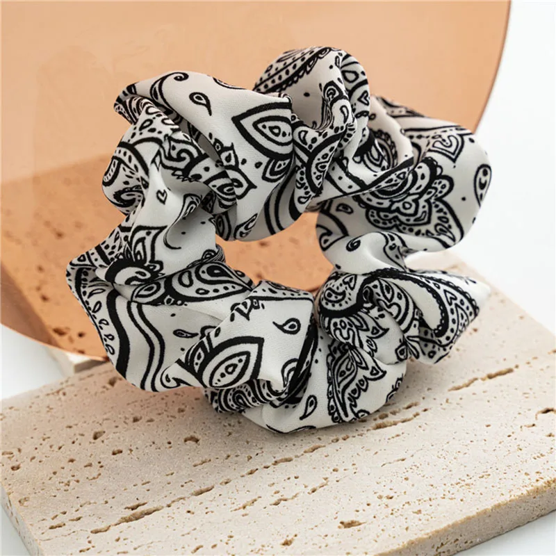 Резинка для волос черная, белая, винтажная, эластичная, с цветочным принтом кешью, Женский хвостик