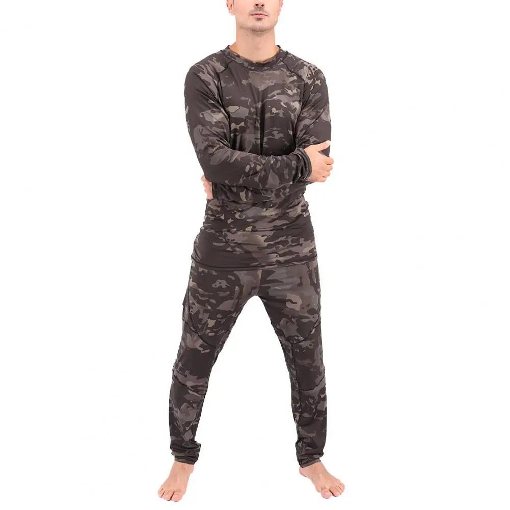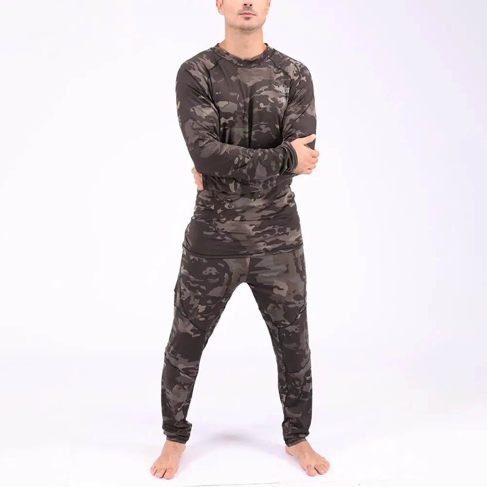 Мужские камуфляжные штаны с длинным рукавом и принтом, штаны для бега, штаны для тренажерного зала, комплект зимнего термобелья