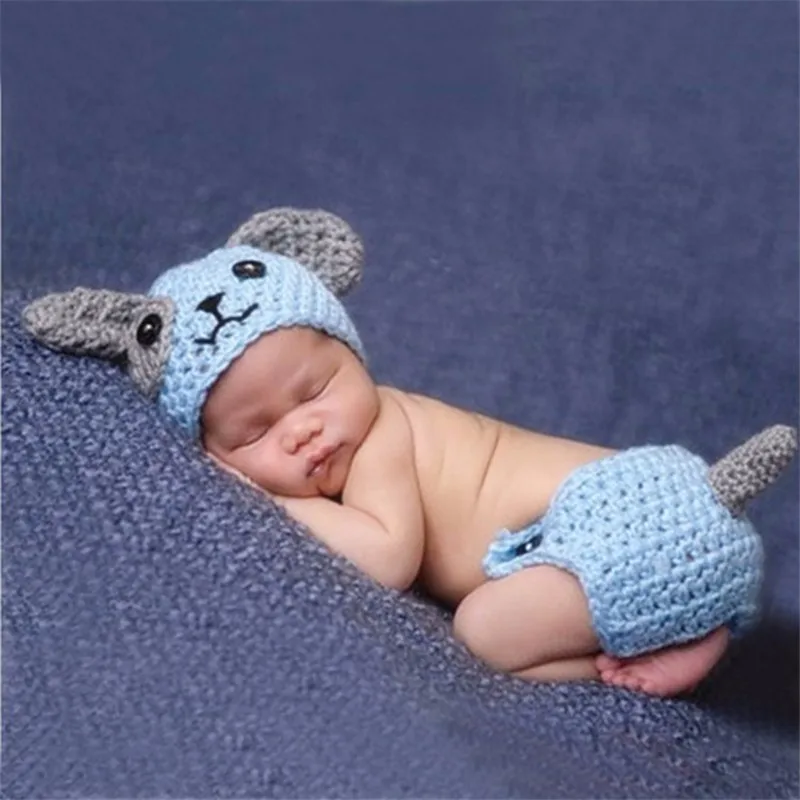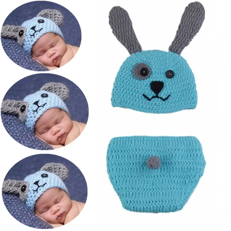 Милая повседневная трикотажная шапочка и подгузник ручной работы в форме собаки 0-6 месяцев, реквизит для фото, костюм для фотосъемки