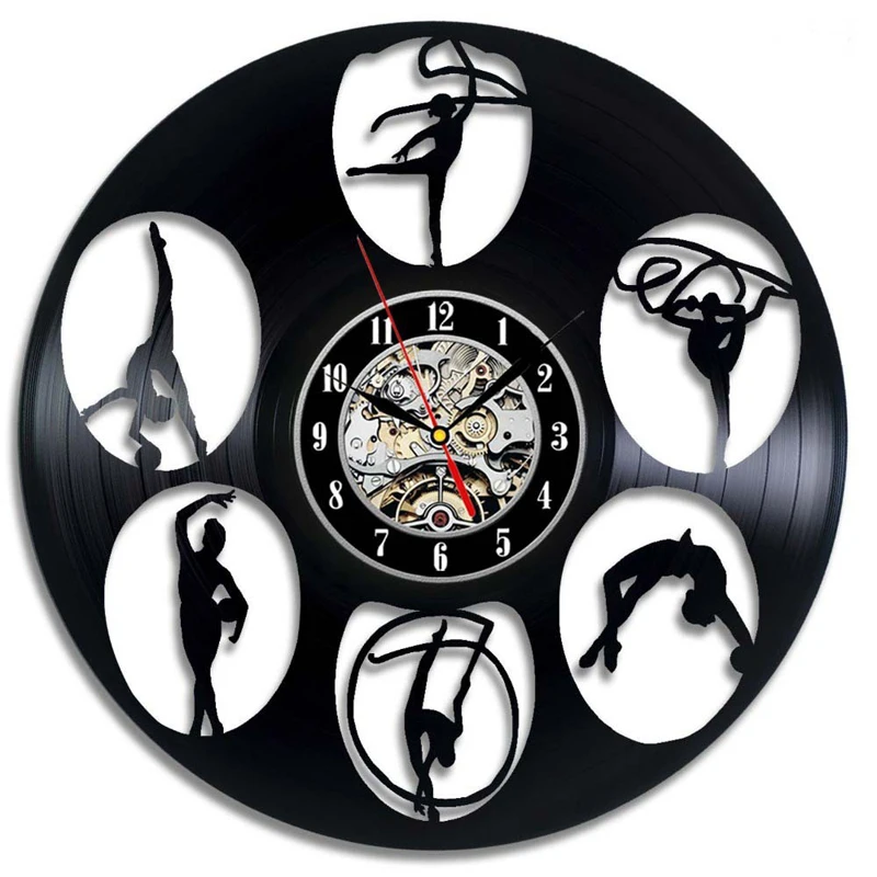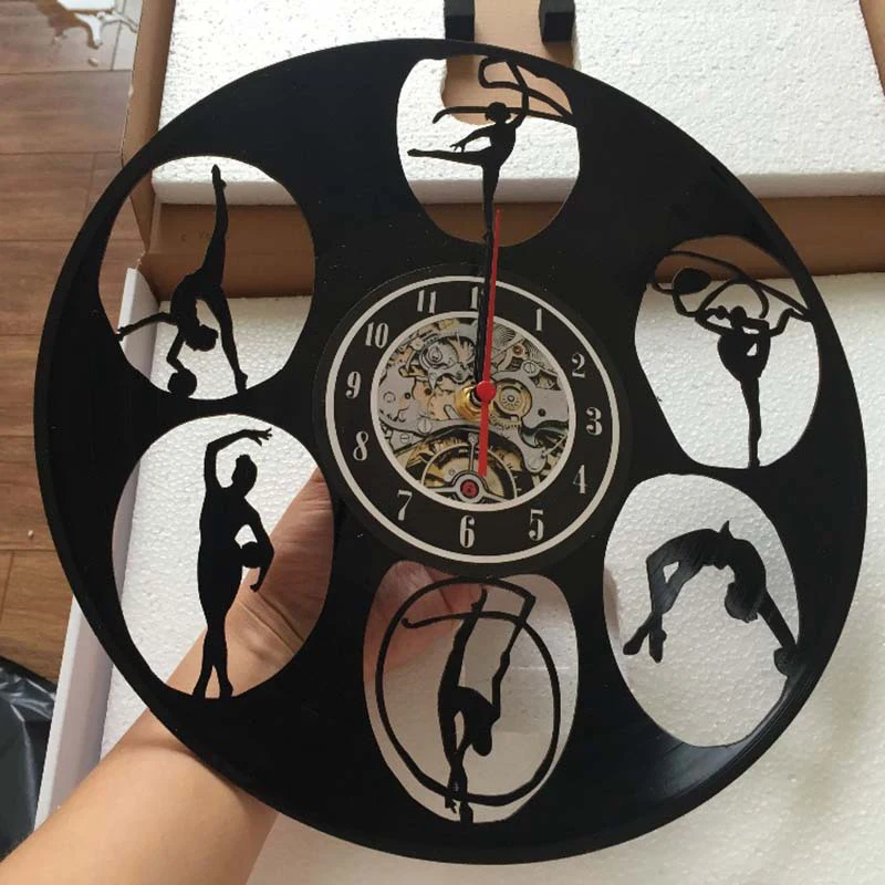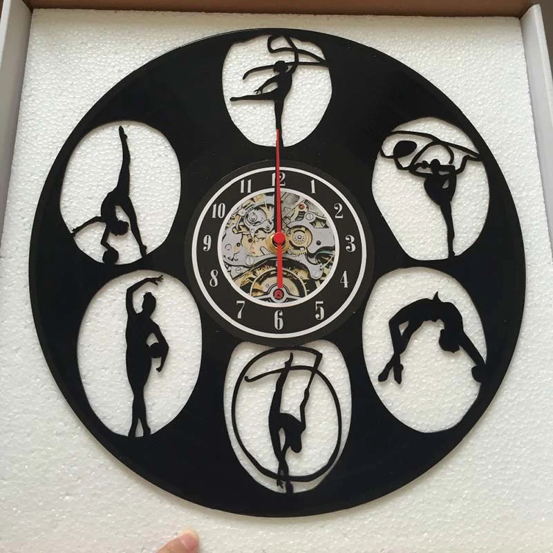Винтажные виниловые настенные часы современный дизайн танец Йога Бодибилдинг часы из винила 3D настенные часы домашний декор подарки для девочек
