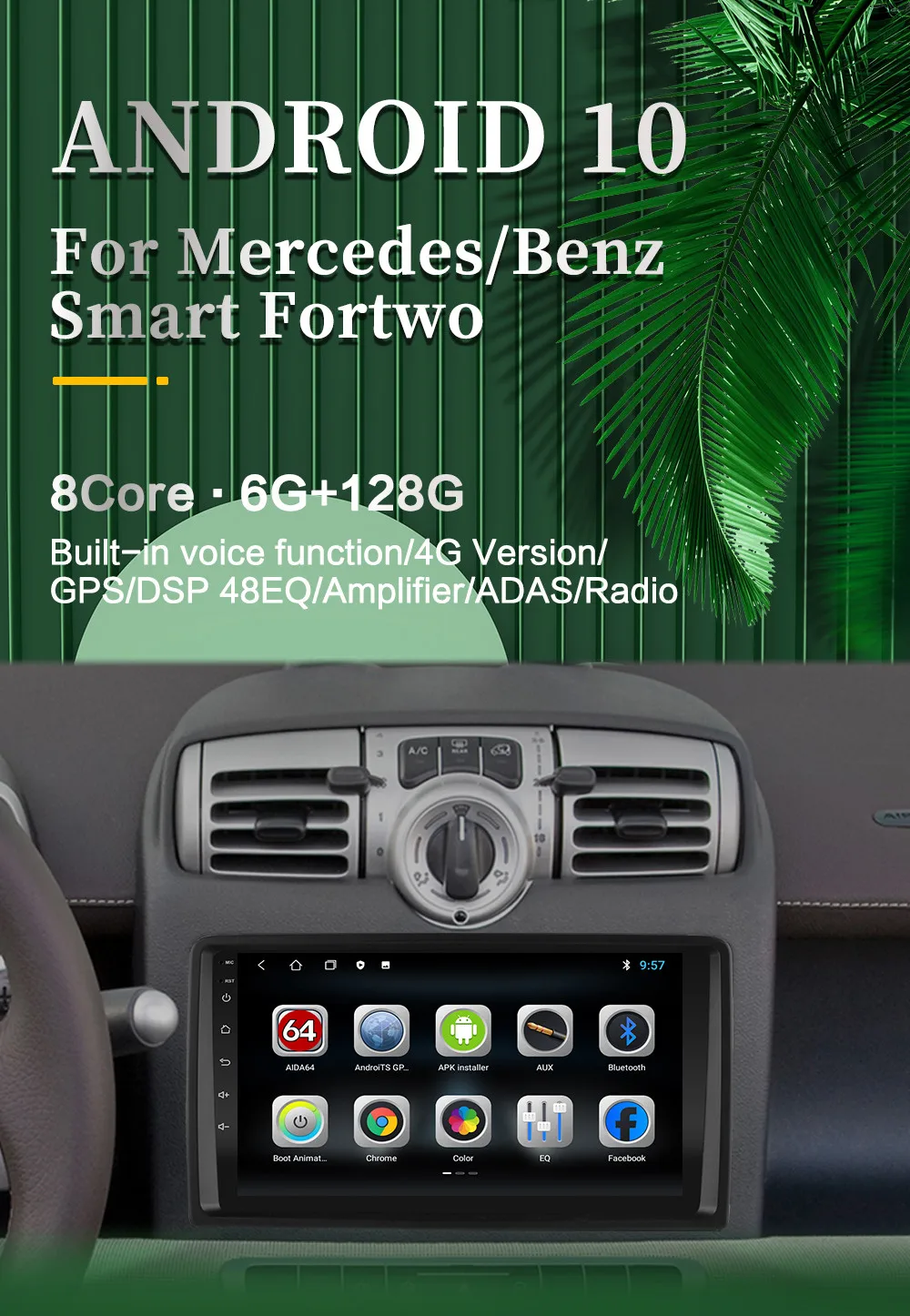 Автомобильный радиоприемник на Android 10,0 DSP, видеоплеер, 8 ядер, мультимедийная навигация для Smart Fortwo W451 2005 2006 2007 2008 2009 2010