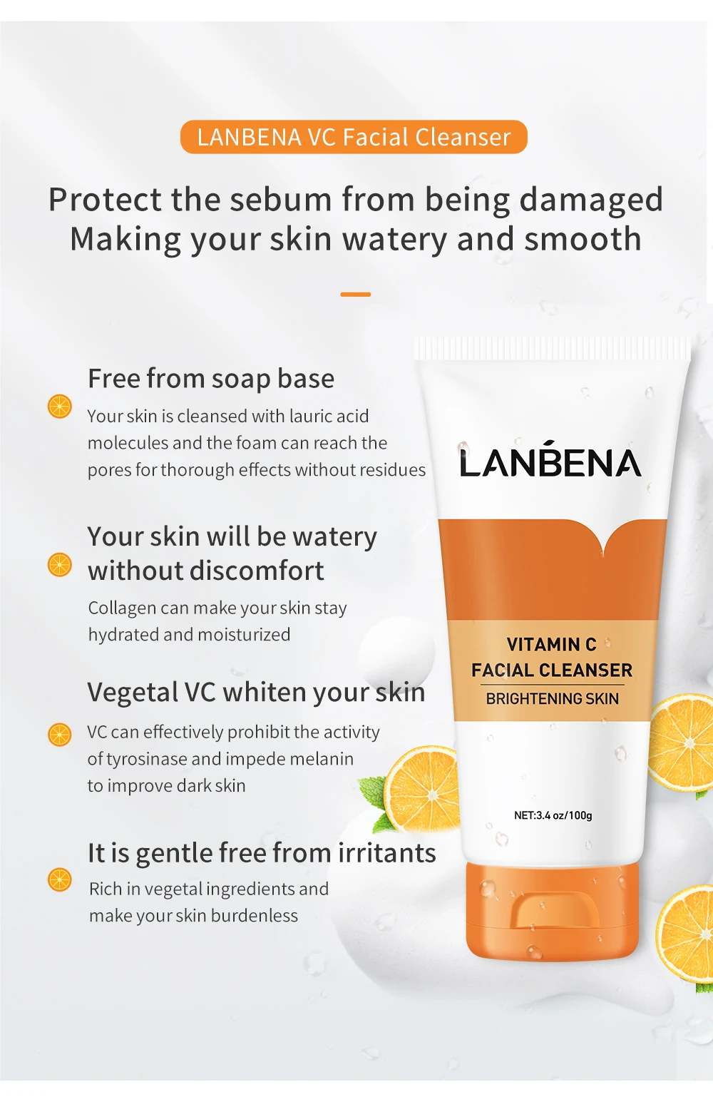Средство для отбеливания лица LANBENA VC, ECTOIN, успокаивающее, чувствительное, от акне, уход восстановление 24K, золотистый пептид, очищающее средство для лица, против старения, уход за кожей, 100 г