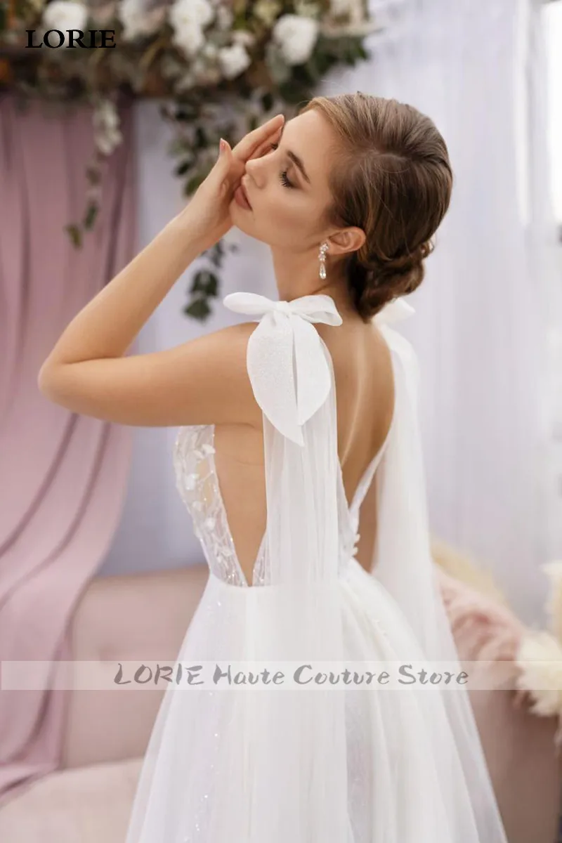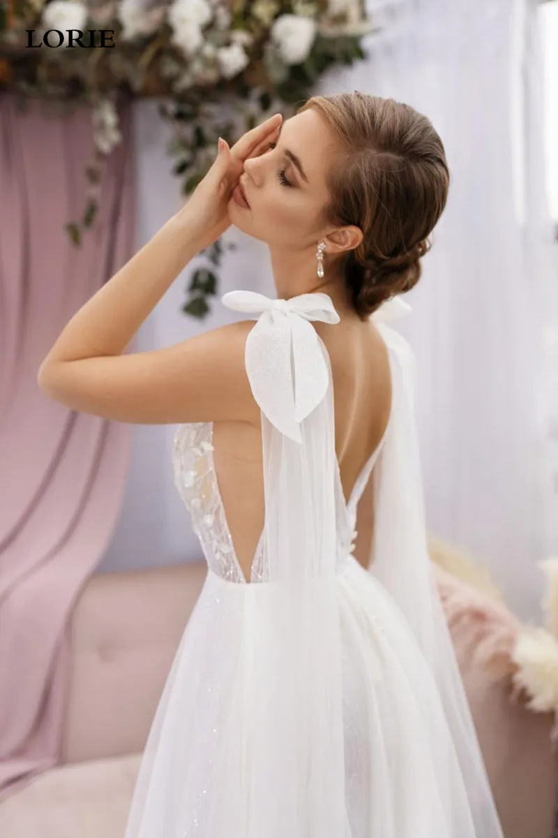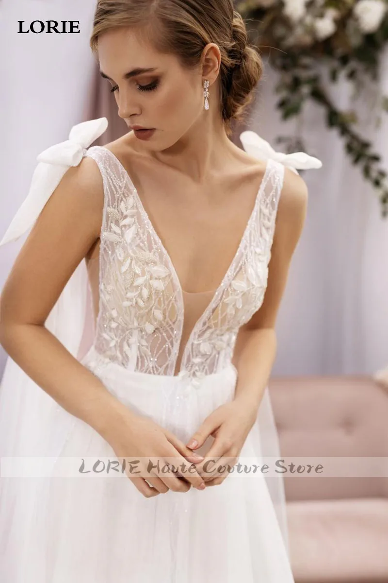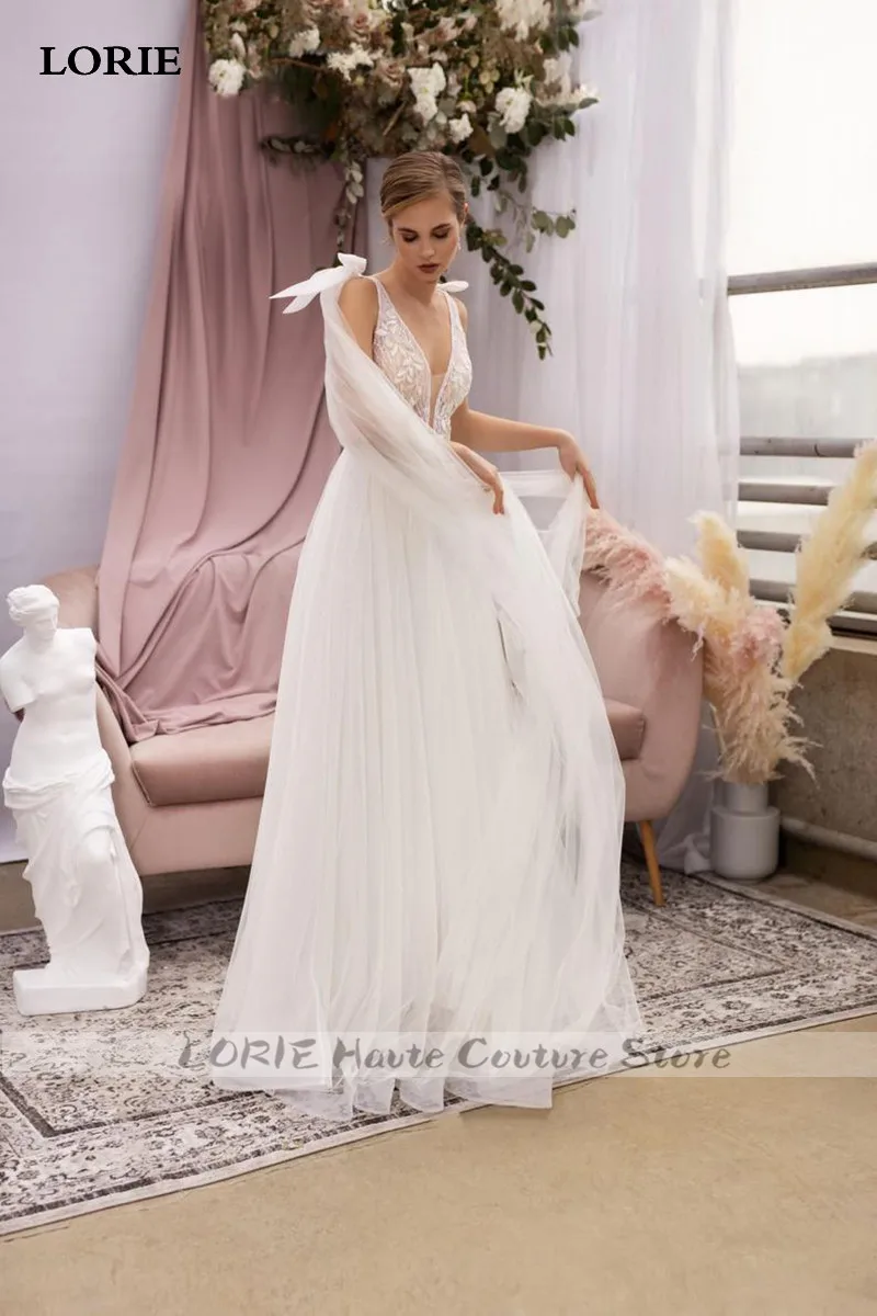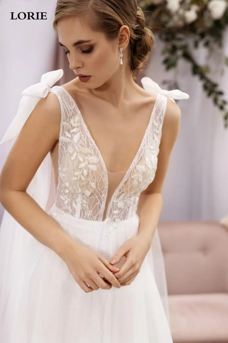 Платье свадебное кружевное из фатина с V-образным вырезом