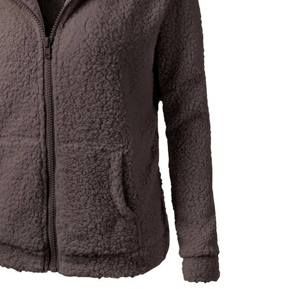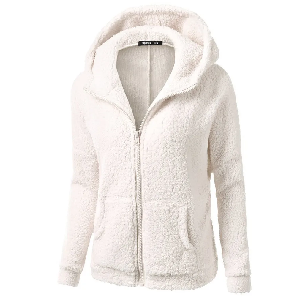 Толстовка Женская флисовая с капюшоном, однотонная худи на молнии с карманами, теплая шерстяная хлопковая верхняя одежда, повседневный свитшот, теплая зимняя одежда