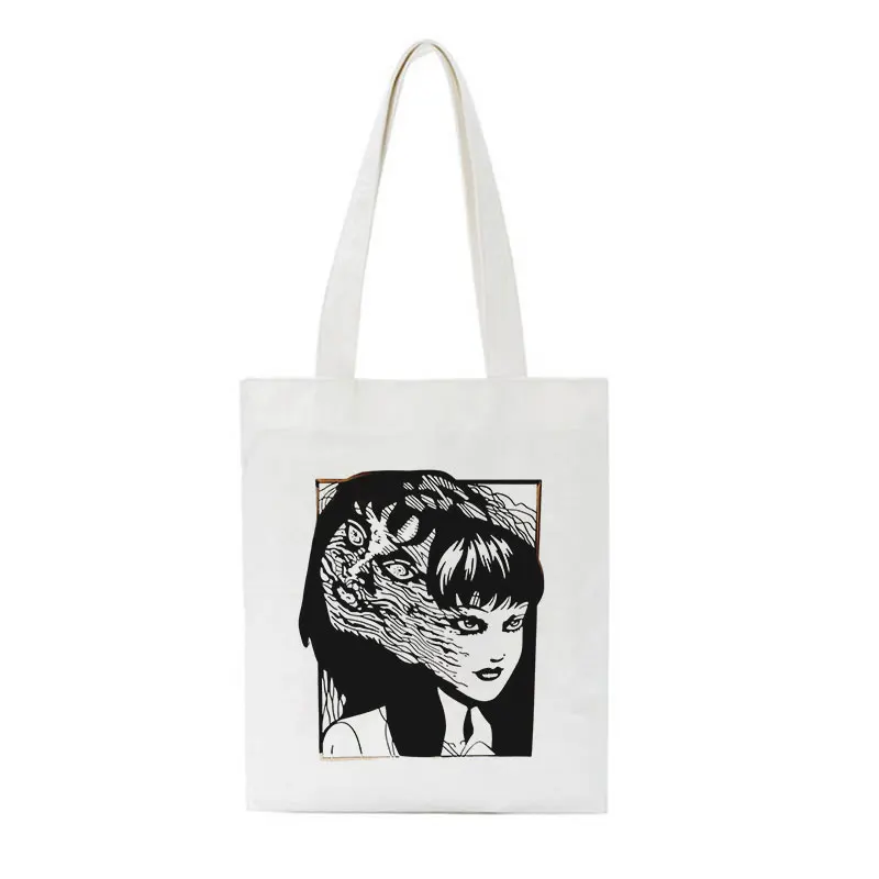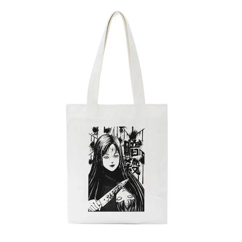 Сумка на плечо Женская холщовая, саквояж в стиле японского аниме, готический ужас, темный мультяшный рисунок, модная повседневная сумочка большой вместимости в стиле Харадзюку