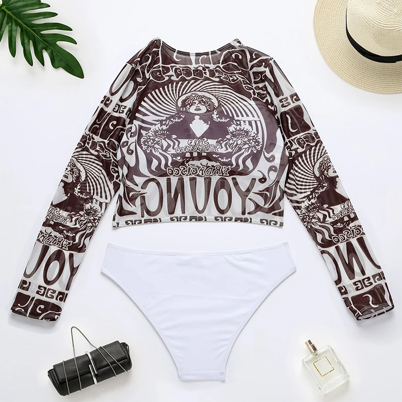 Соблазнительный комплект бикини с винтажным принтом, сетчатый купал...