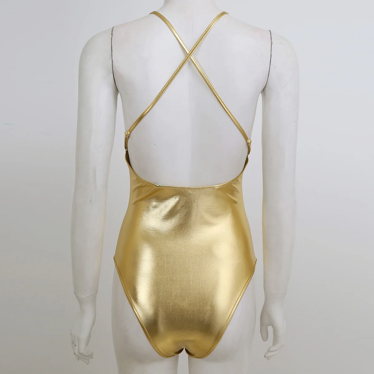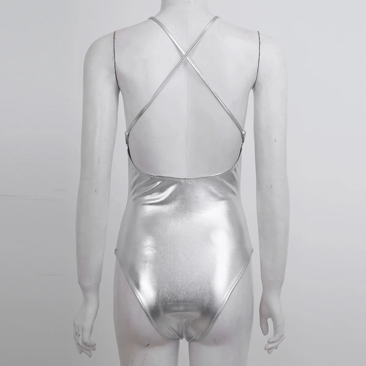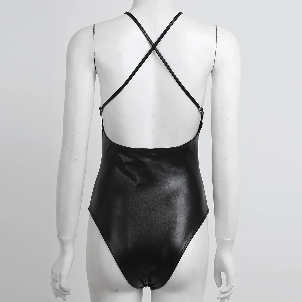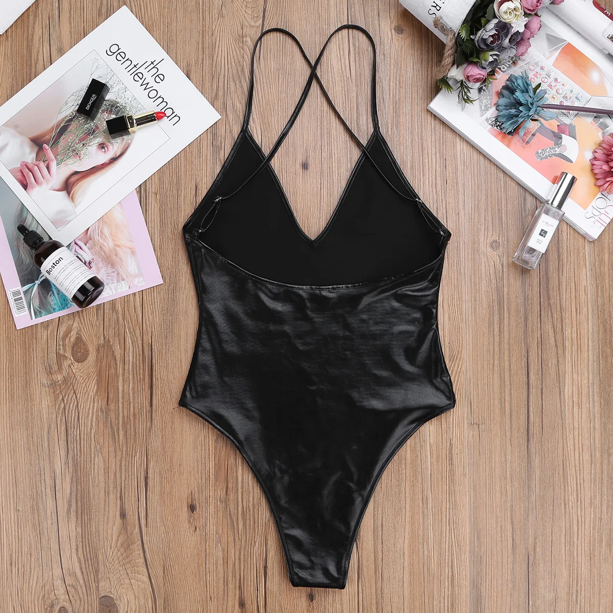 Женское нижнее белье из лакированной кожи, сексуальные костюмы, боди, женское нижнее белье, трико с глубоким V-образным вырезом для ночного клуба, Рейв, танцев на пилоне