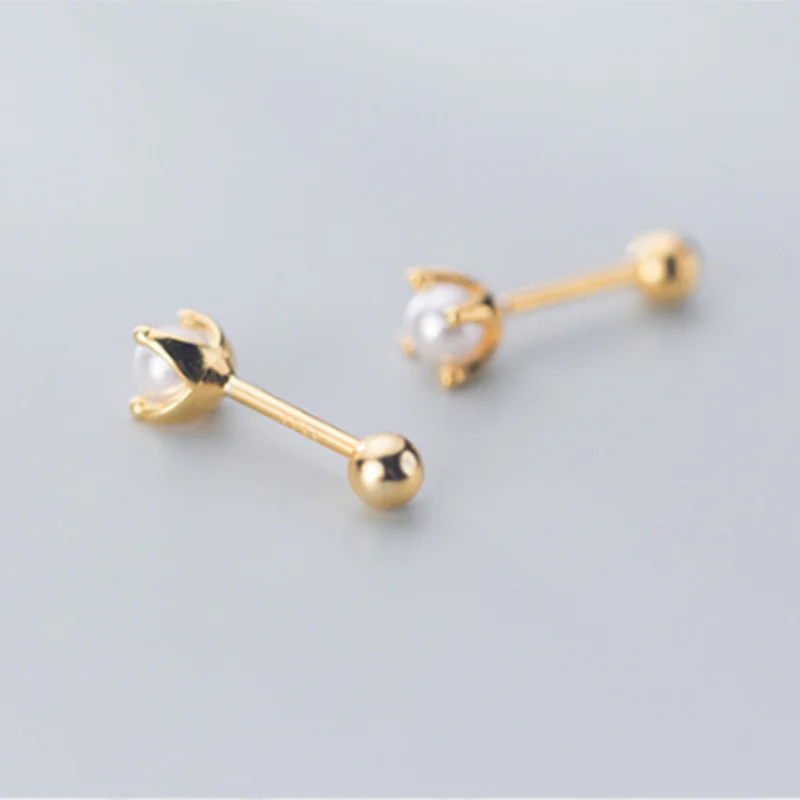 WANTME натуральная 925 стерлингового серебра Мода в Корейском стиле; Милое мини-жемчужные серьги-гвоздики для женщин Романтический вечерние ко дню рождения, ювелирные изделия в качестве подарка