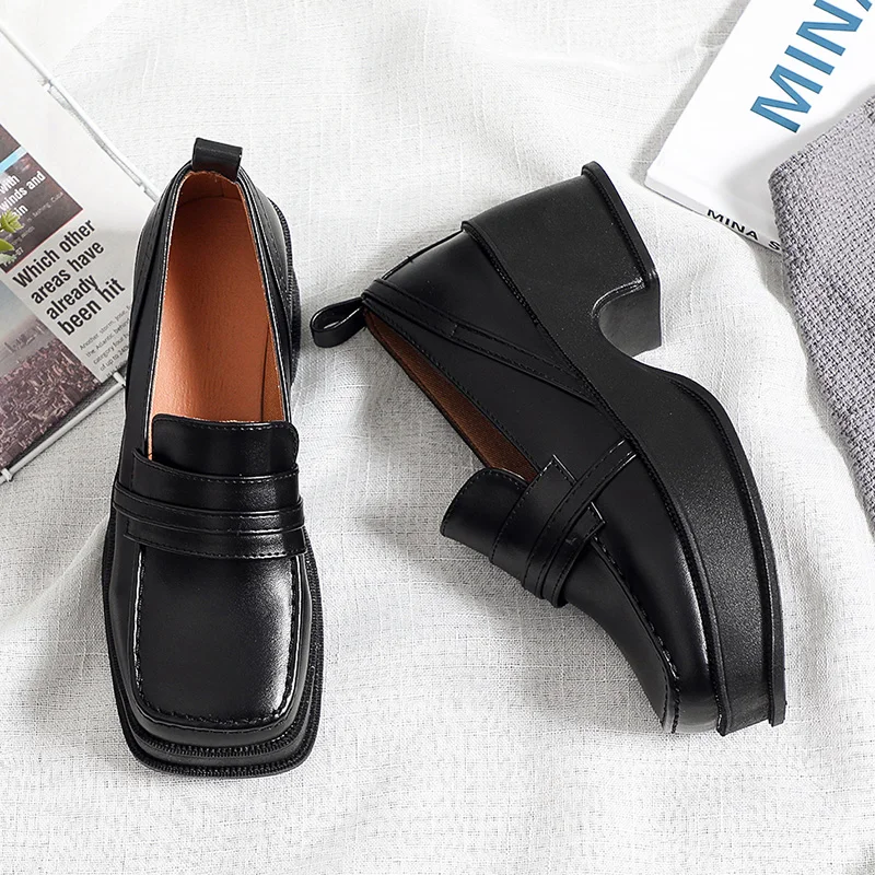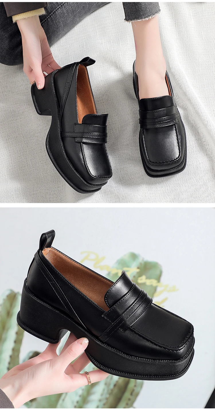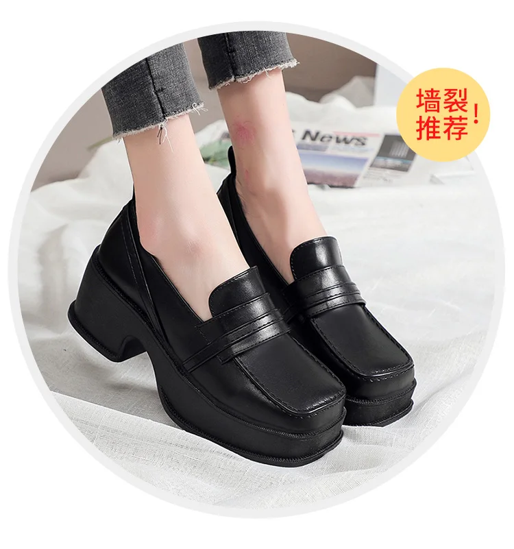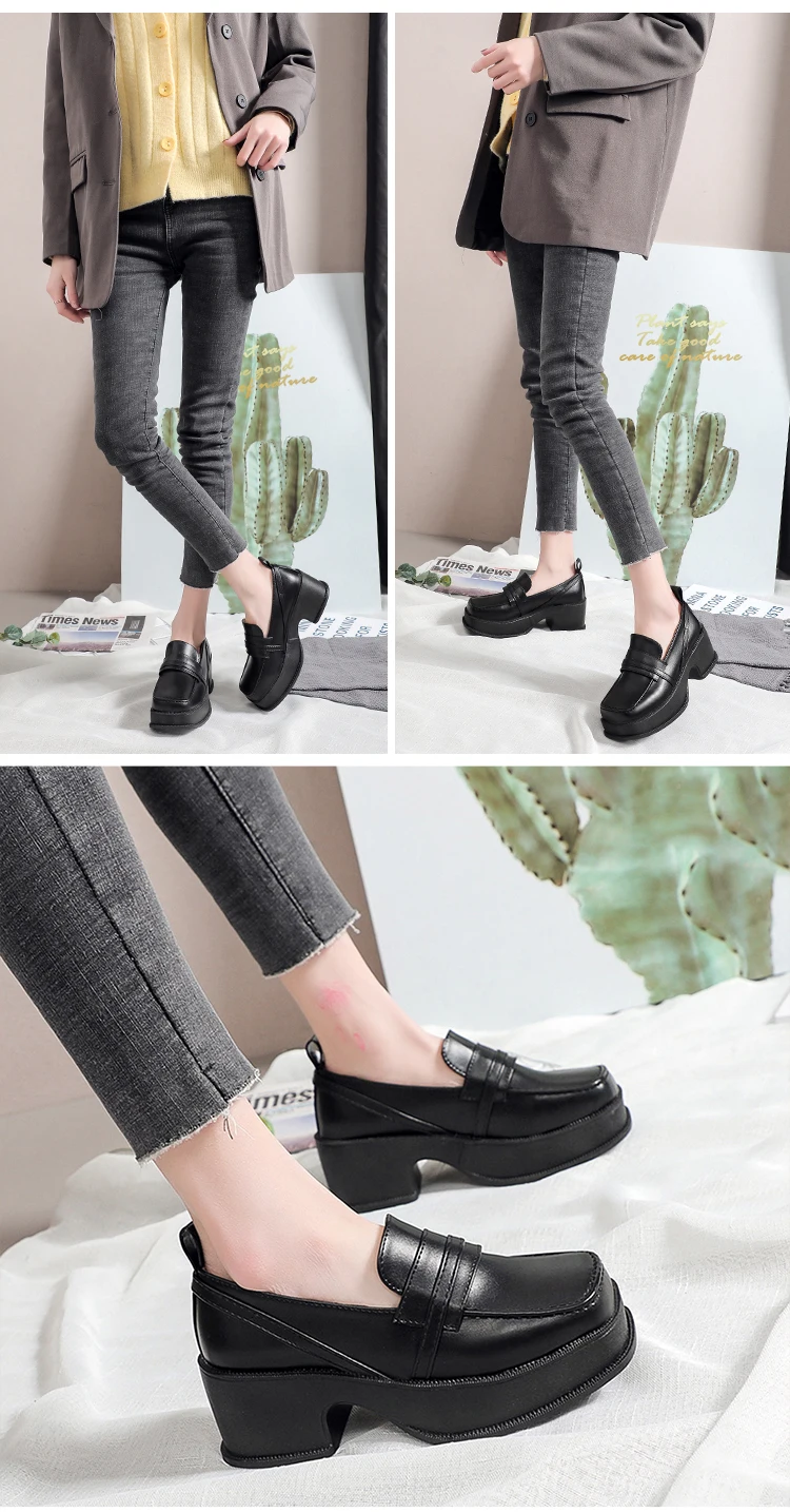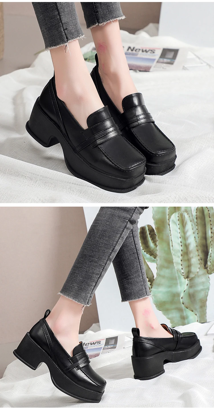 Туфли женские на платформе в британском стиле, универсальные лоферы на платформе, квадратный носок, высокий каблук, милая Лолита, Мэри Джейн, Ретро стиль
