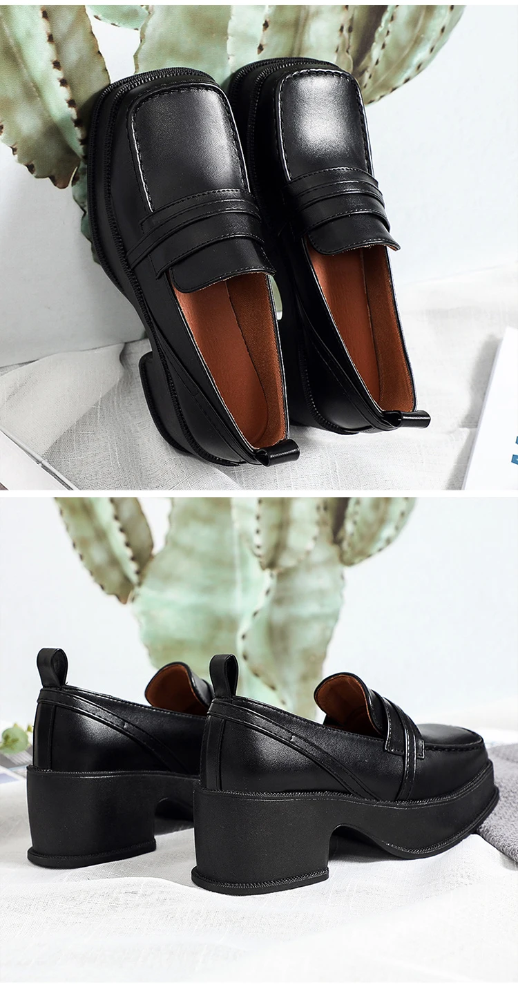 Лоферы женские на массивной подошве, кожаная обувь в стиле Лолита, ...