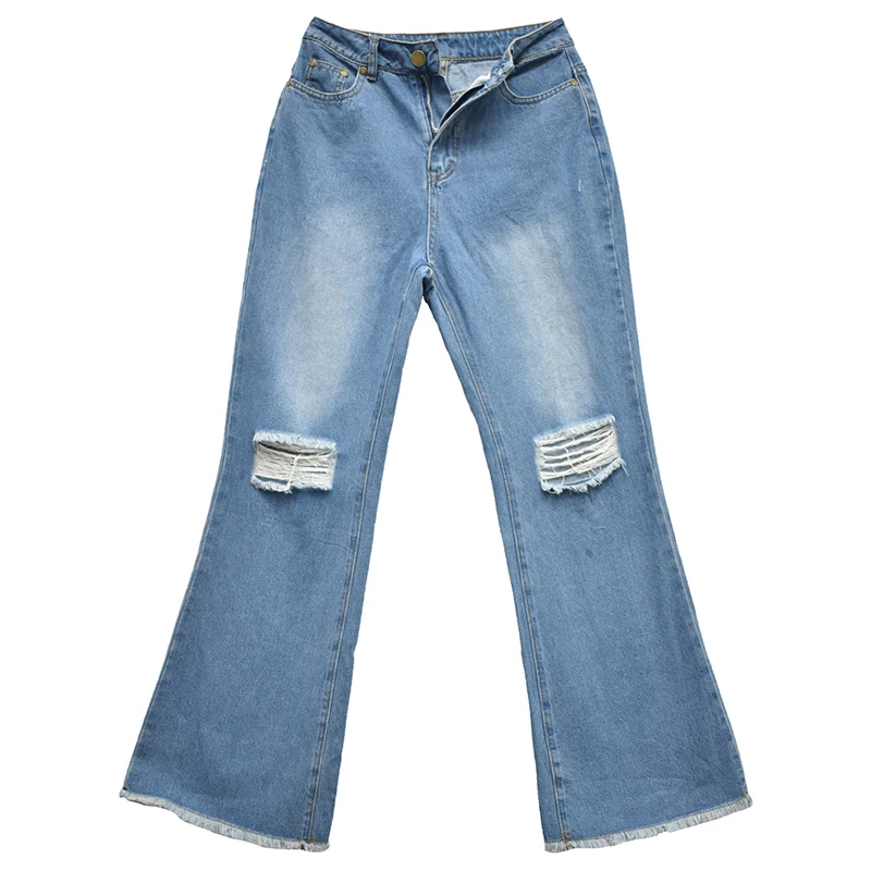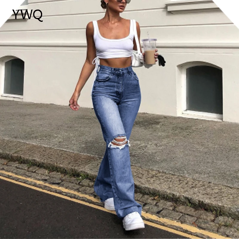 Женские рваные джинсы-колокол Y2k с вырезами, джинсы МОМ с высокой талией, шикарные расклешенные джинсовые брюки, винтажные Брюки с широкими штанинами, 6338