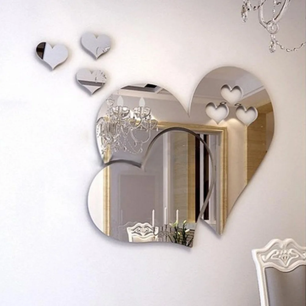 20x17 см Креативные 3D акриловые настенные наклейки в форме сердца самоклеющиеся самодельные Декорации для дома зеркальные наклейки