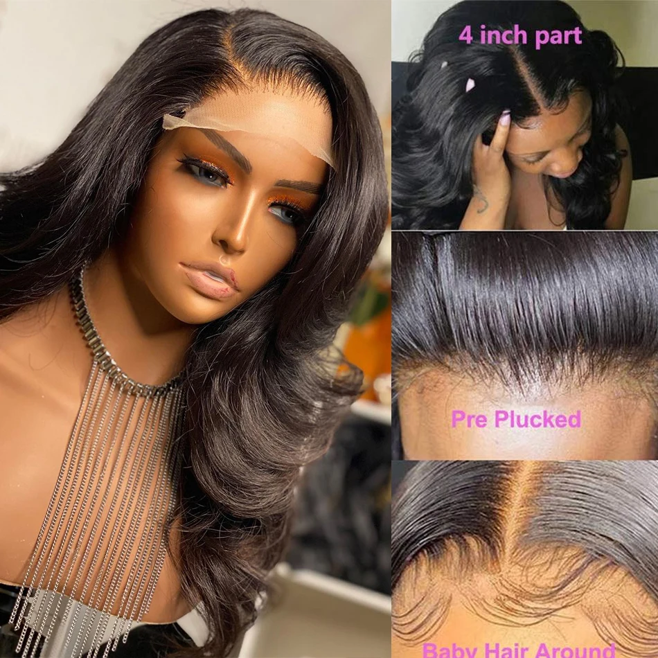 HD прозрачный Синтетические волосы на кружеве al парики из натуральных волос объемная волна часть Синтетические волосы на кружеве парик 28 дюймов парики из натуральных волос для Для женщин Remy 13X6 парик шнурка