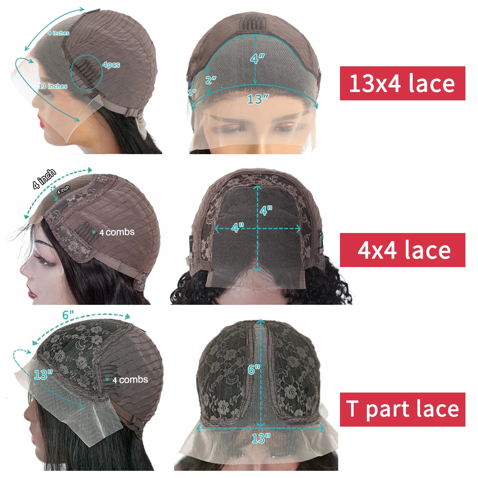 Combs3 combs front back side(two) glueless wig