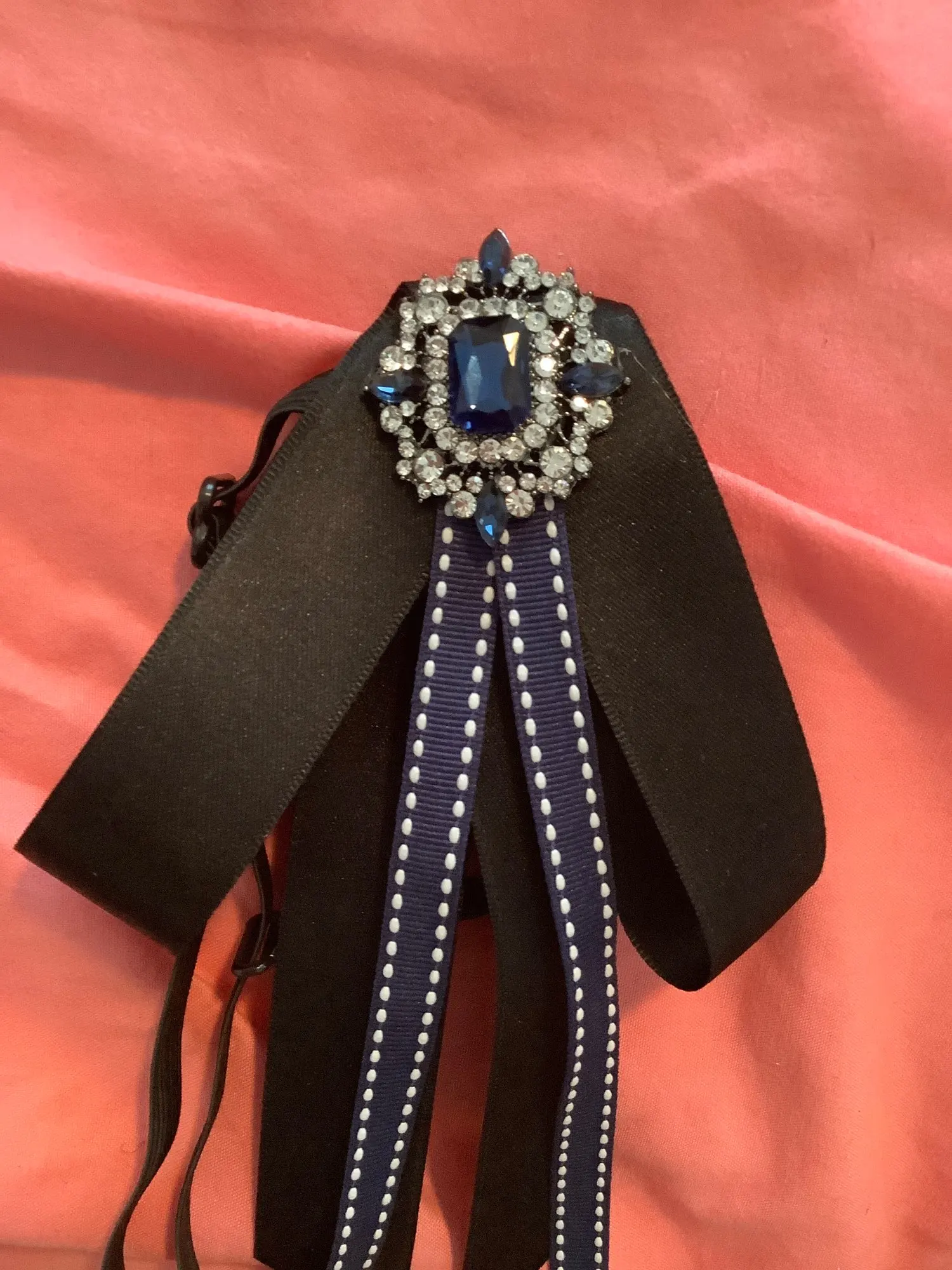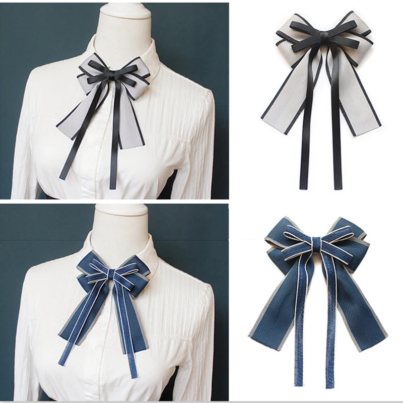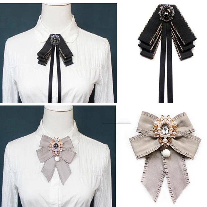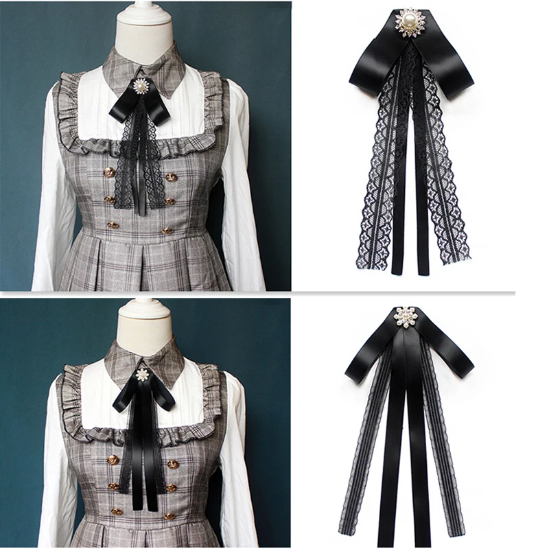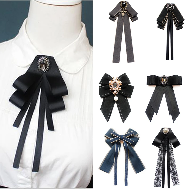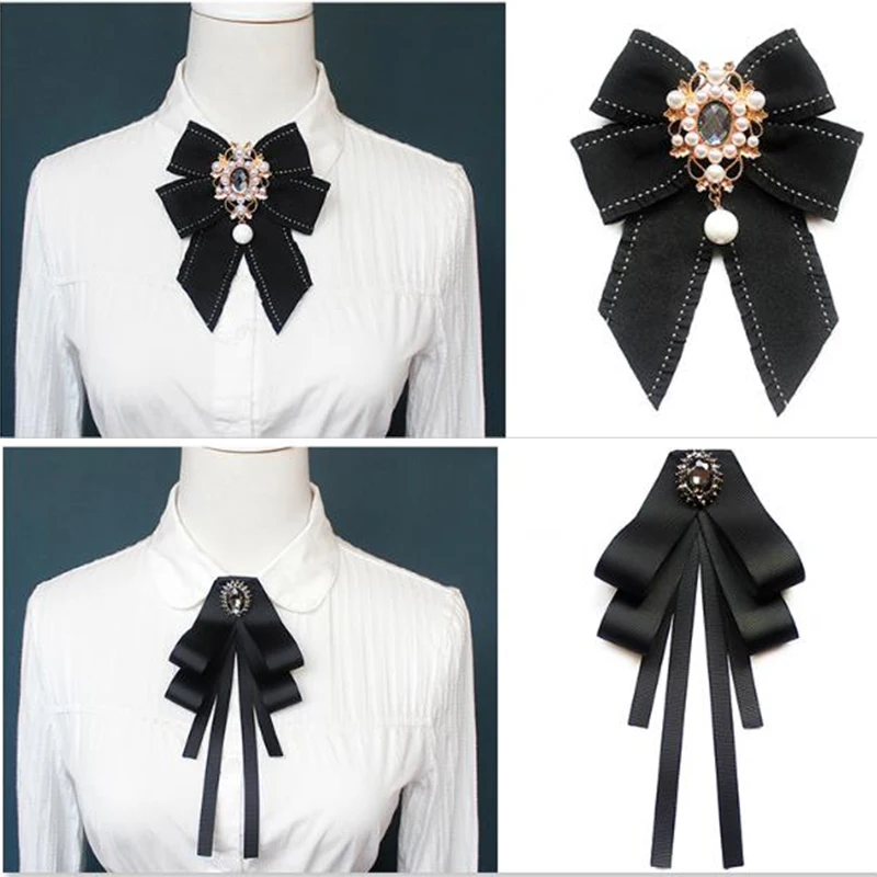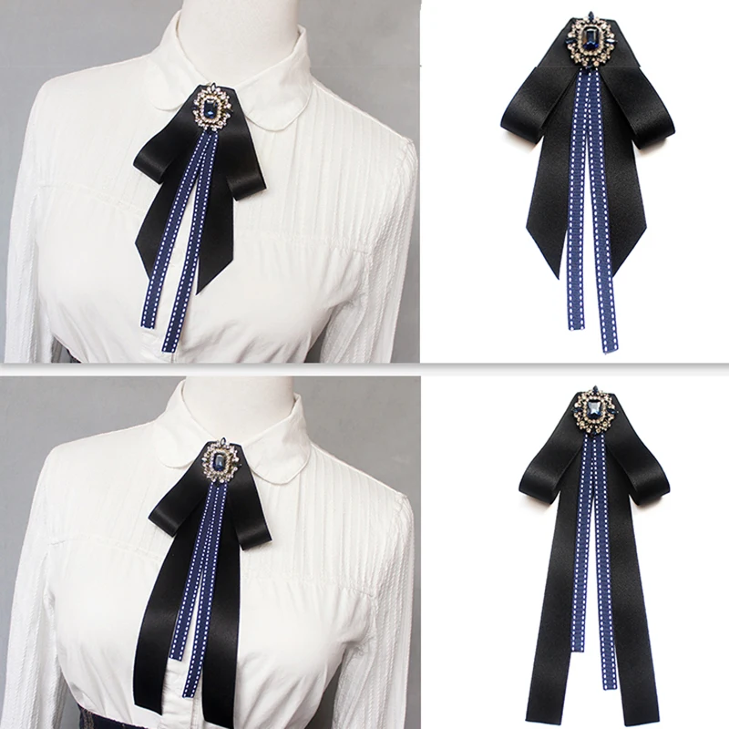 Женский Галстук-бабочка из черной ленты ручной работы, модная рубашка с кристаллами, блузка с бантом, Школьные Аксессуары для деловой одежды рубашка для студента