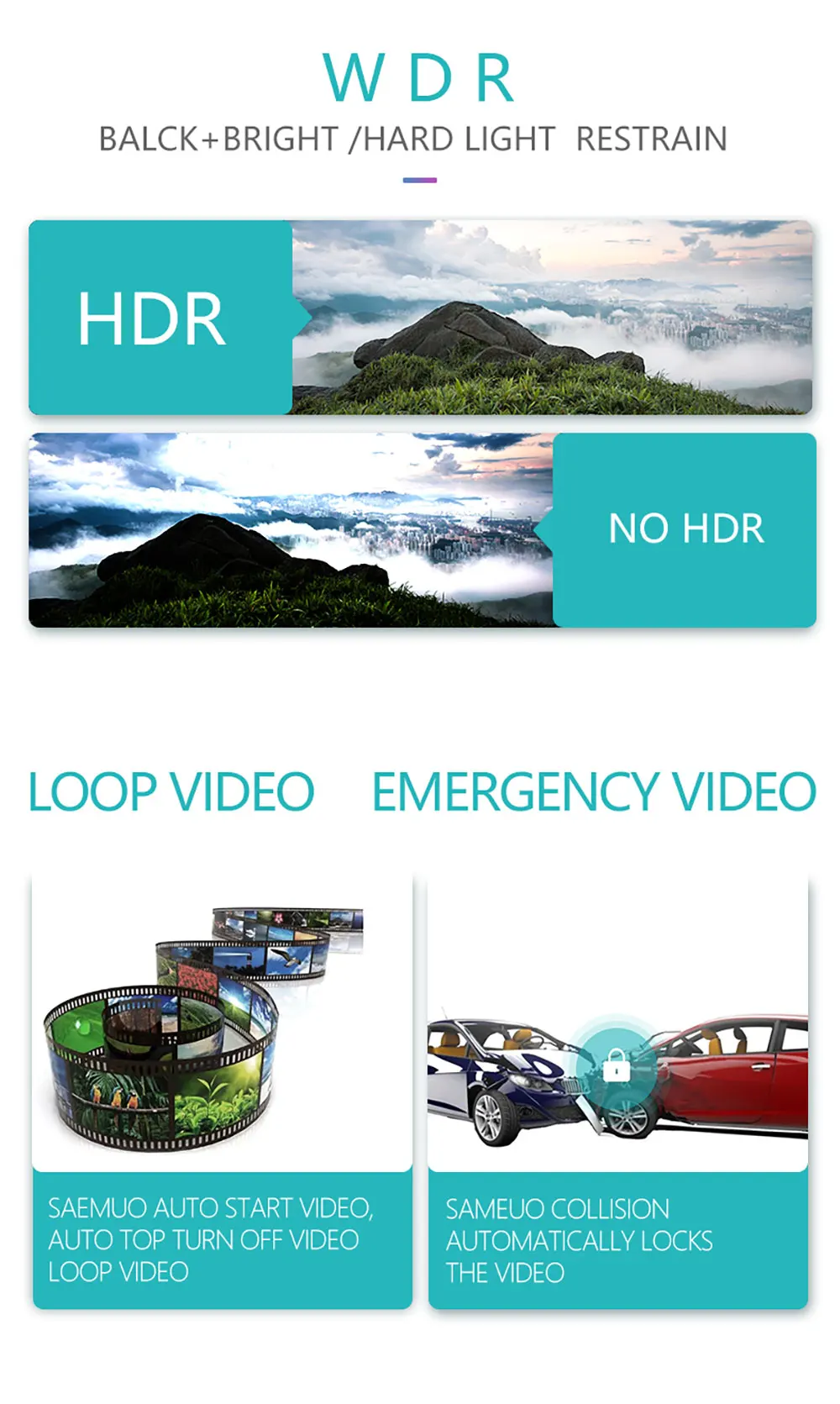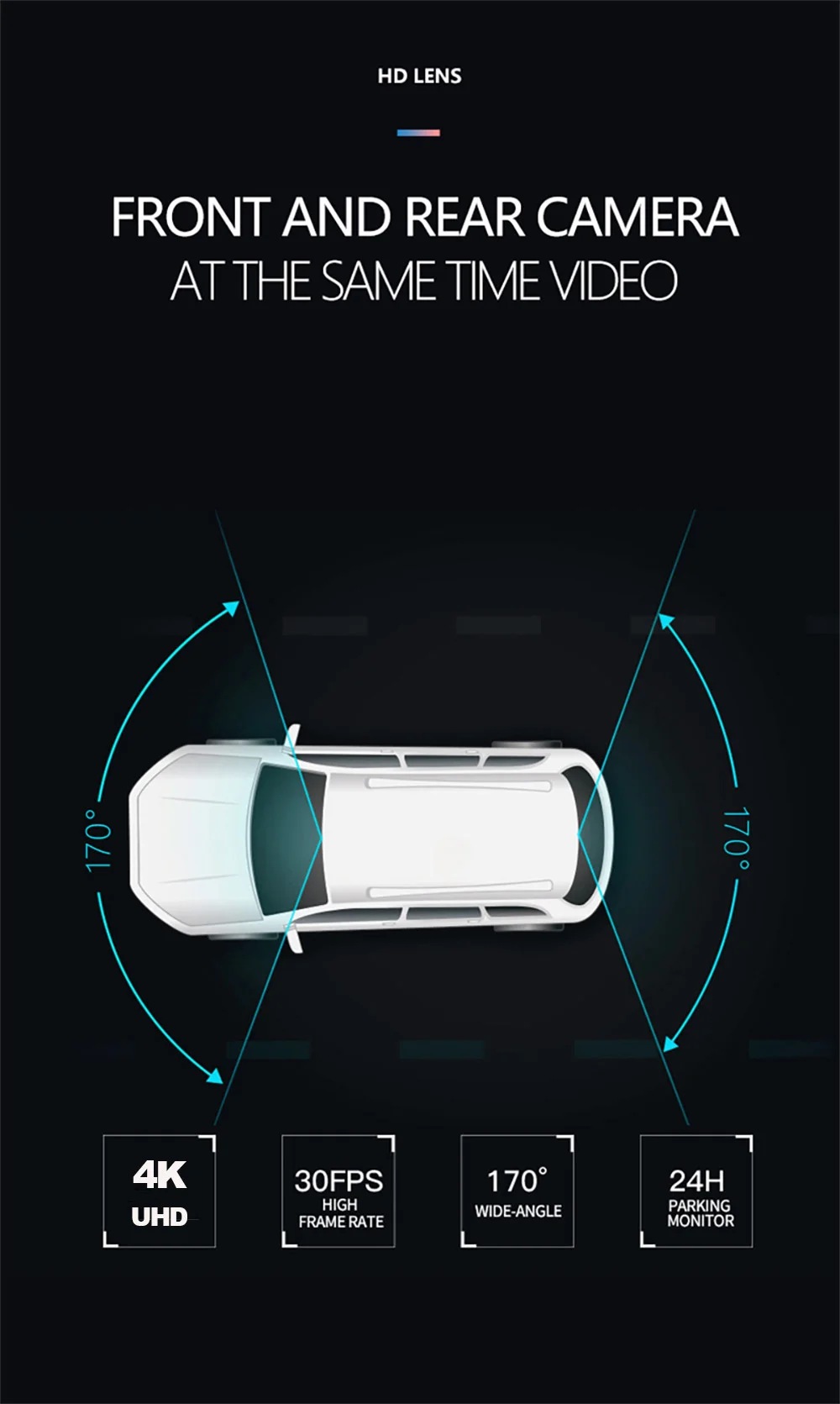 Высококачественное изображение/видеозапись "Двойная камера" спереди и внутри автомобиля запись "Встроенный g-сенсор, который автоматически записывает кадры после shock'Auto-loop recordingBest