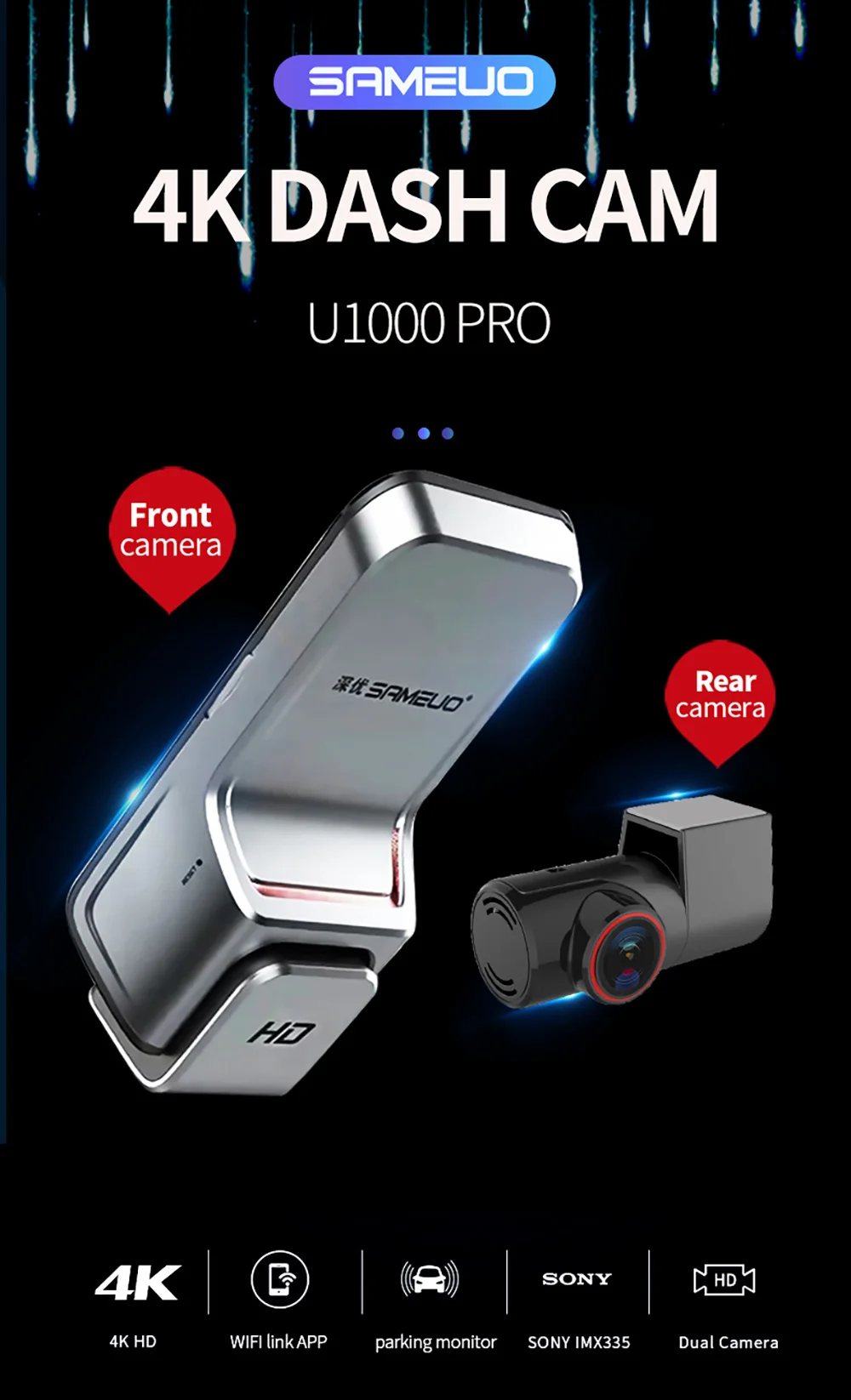 Автомобильный видеорегистратор Sameuo U1000, видеорегистратор с Wi-Fi, видеорегистратор 4k, видеорегистратор, скрытая камера, 2160P, автомобильные регистраторы, 24 часа в сутки, парковка