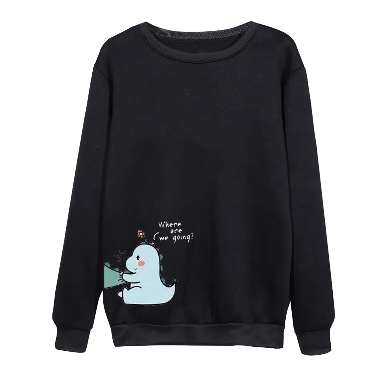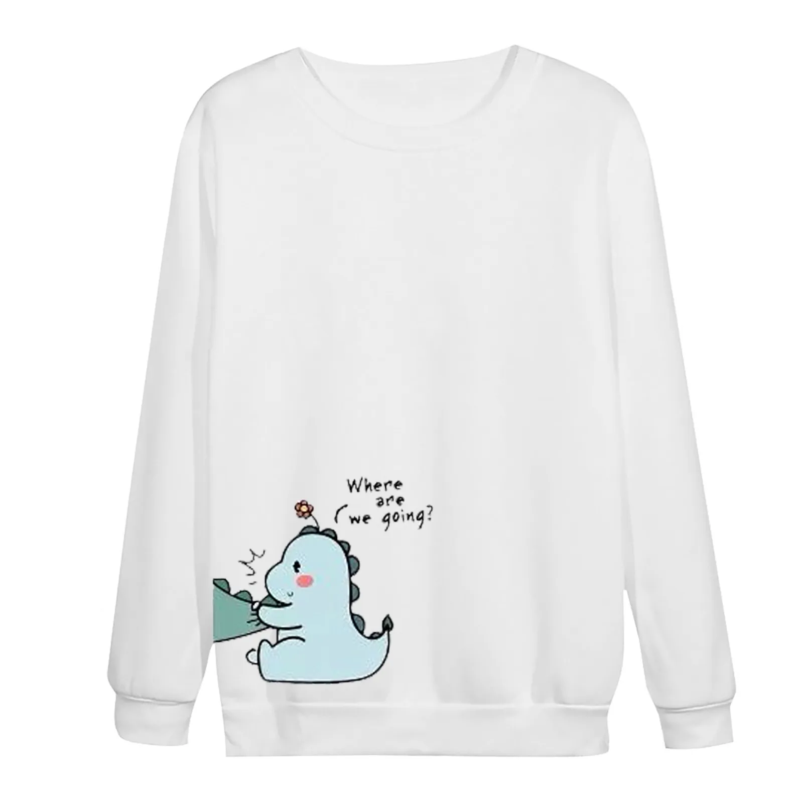 Повседневные рубашки унисекс с круглым вырезом и длинными рукавами с принтом динозавра