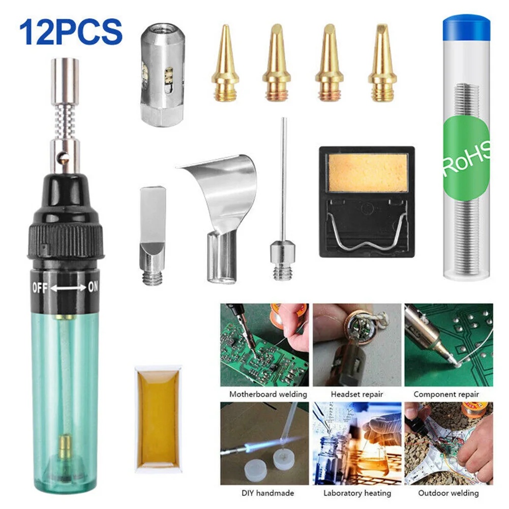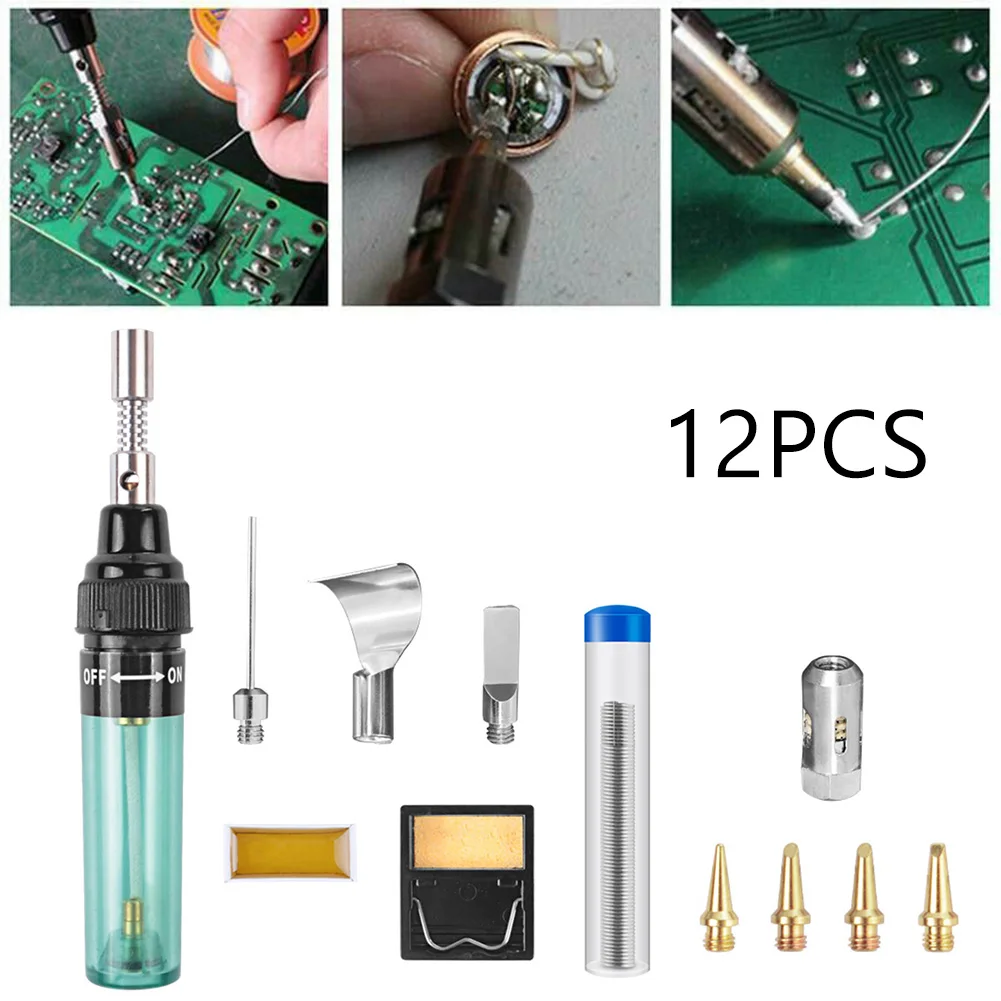 12 шт. в упаковке, Портативный бутан газовый паяльник Набор сварки комплект фонарь сварщик MT-100 плата сварочной цепи инструмент для ремонта Wжало паяльника