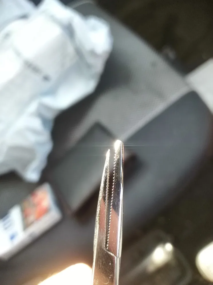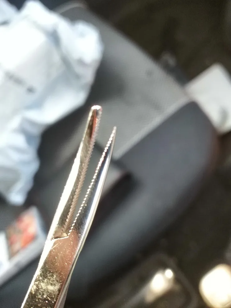 Зубчатые губки обеспечивают тиски, как захват при блокировке гемостата