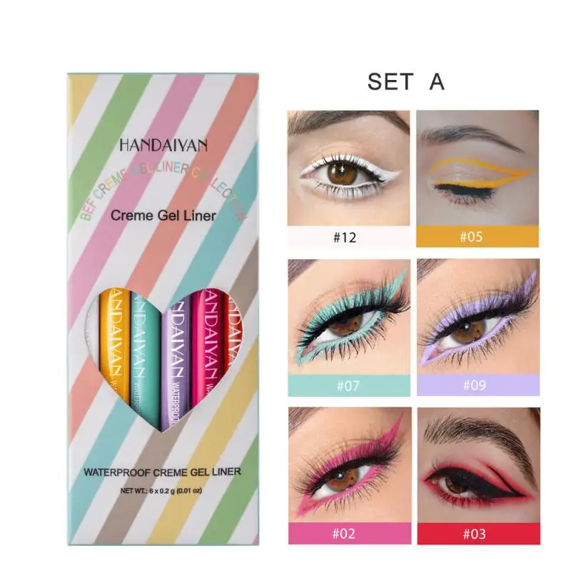 Стойкая подводка для глаз HANDAIYAN, 6 цветов, водостойкая не размазывающаяся модная ультратонкая подводка для глаз, гелевая Косметика для макияжа TSLM2