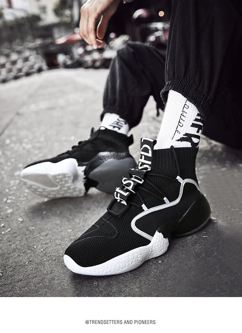 Кроссовки-Носки мужские, дышащие, высокие, на шнуровке, повседневны...