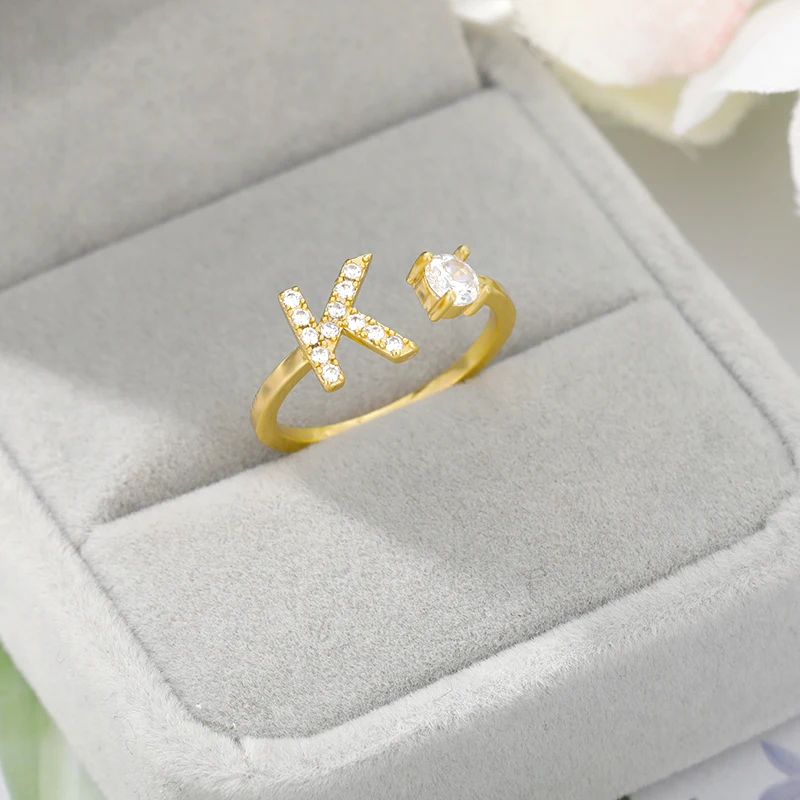 Регулируемое открывающееся кольцо с A-Z из циркония, с надписью, имя, кольцо из нержавеющей стали, Дамское модное ювелирное изделие, подарок для женщин 2020