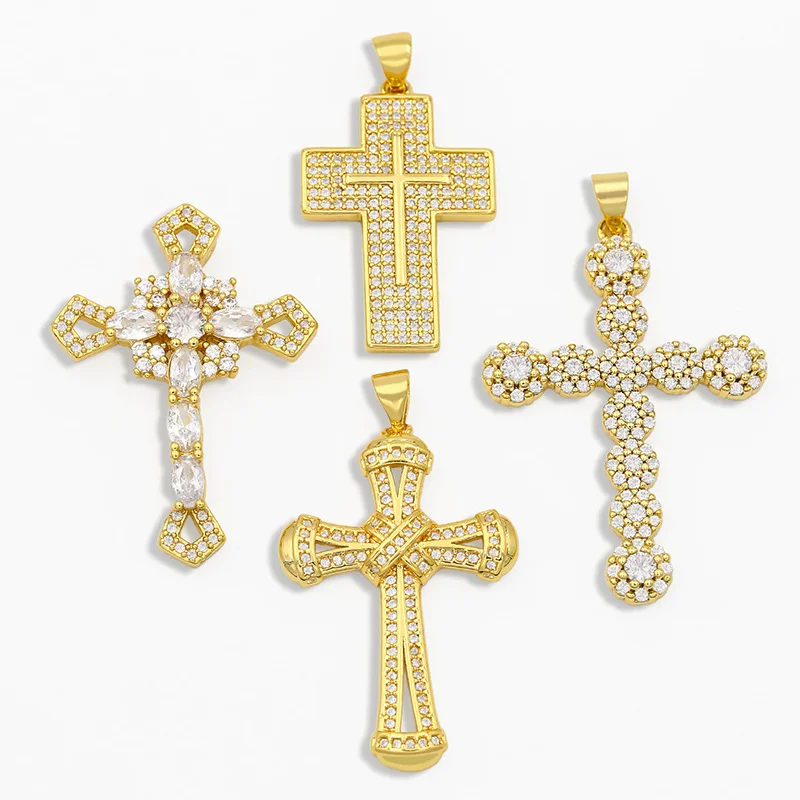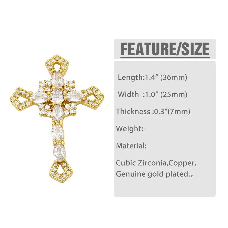Подвеска-Крест OCESRIO, из белого кубического циркония, с большим з...
