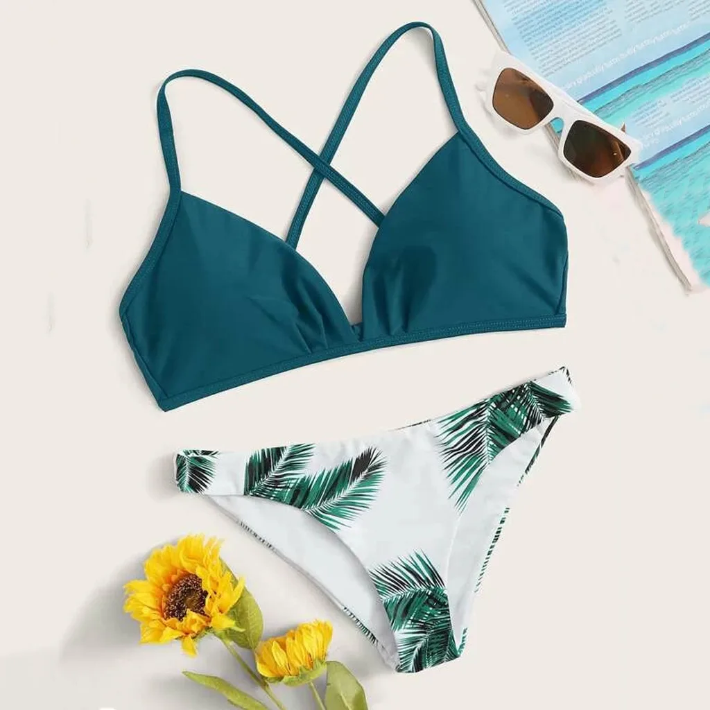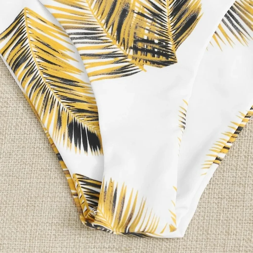 Пикантные лиственным принтом бикини 2021 женский купальник Для женщин купальники бикини набор Пуш-ап бикини Высокая Талия Цветочные случайный принт комплект бикини