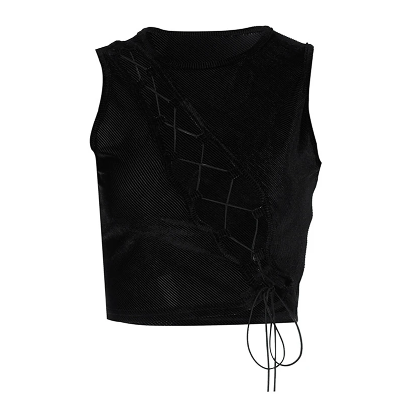 Женский укороченный топ с круглым вырезом, однотонный черный повседневный облегающий топ с вырезами, 2021