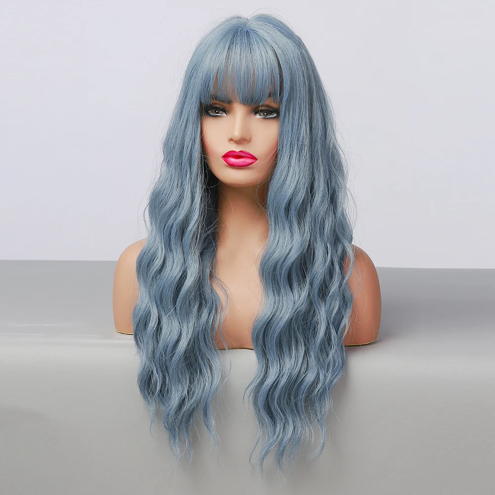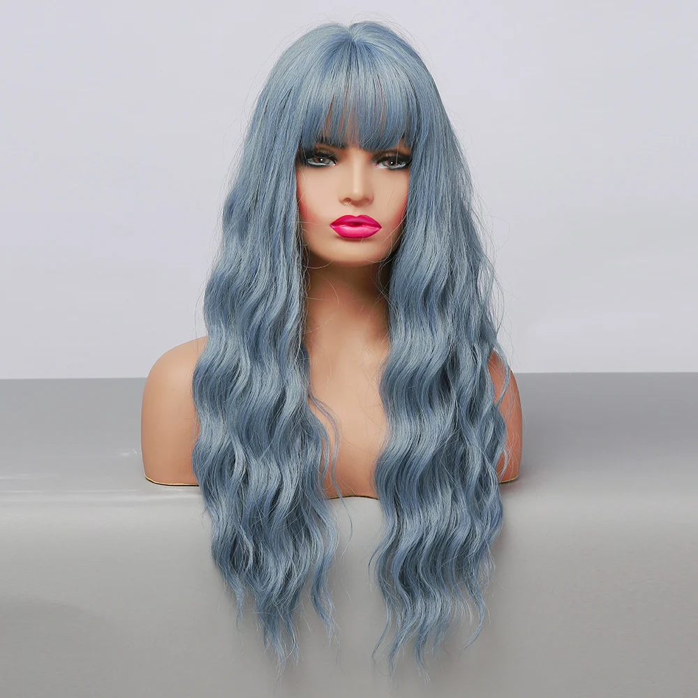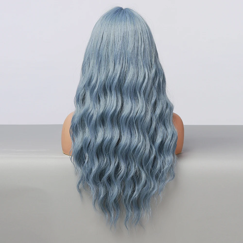 Длинные вьющиеся волнистые парики LOUIS FERRE с воздушной челкой, синтетический синий косплей парик для женщин, термостойкий красочный парик для костюма