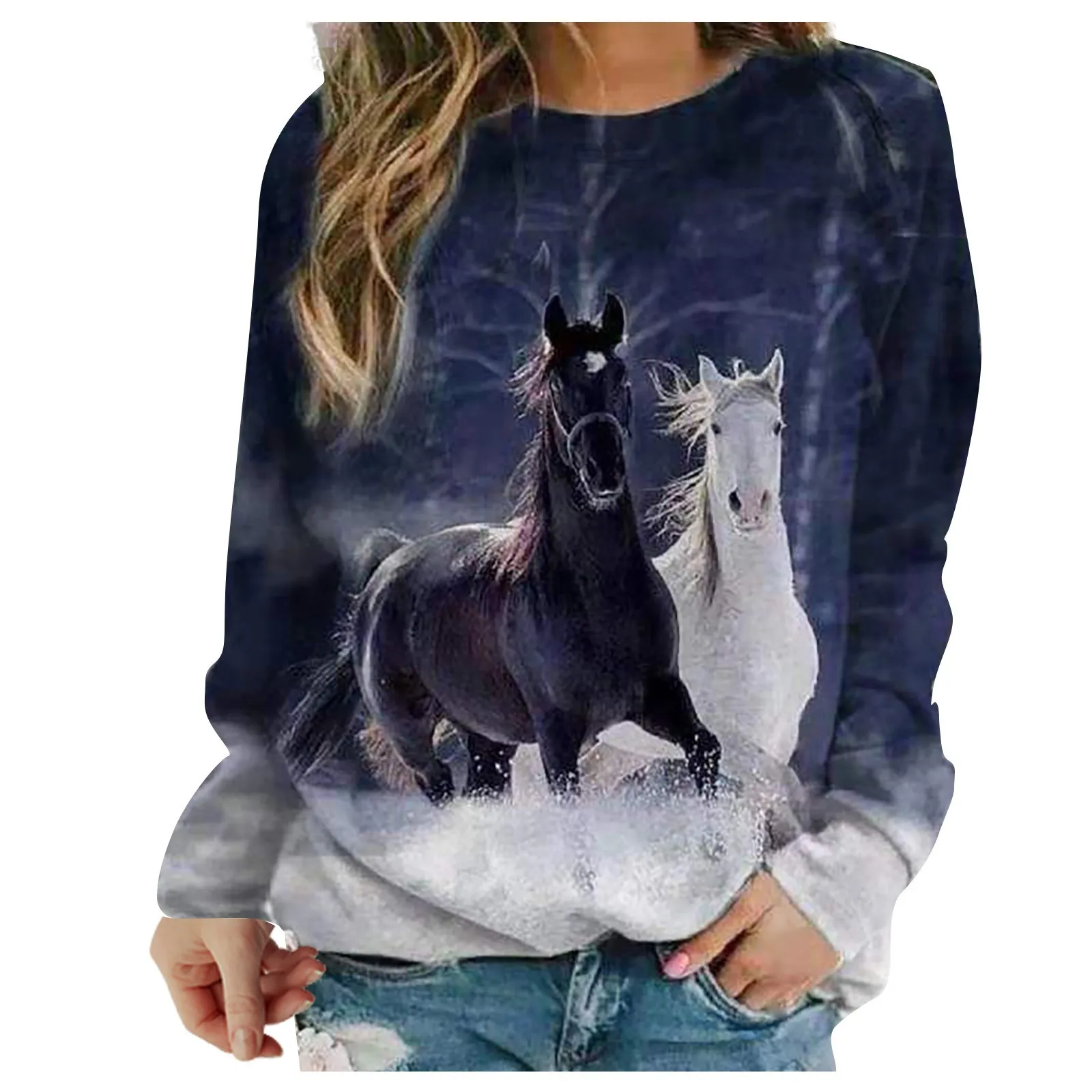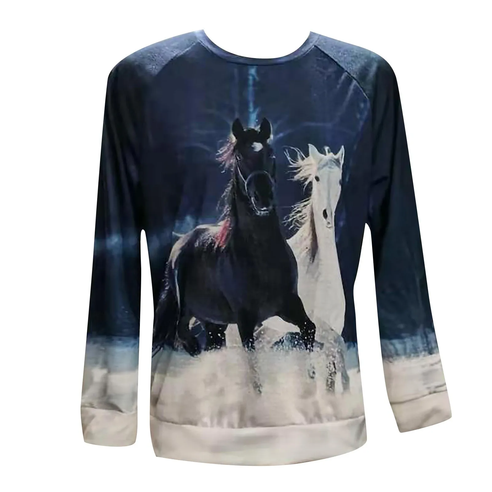 Модные женские блузки с круглым вырезом и длинными рукавами с принтом лошади