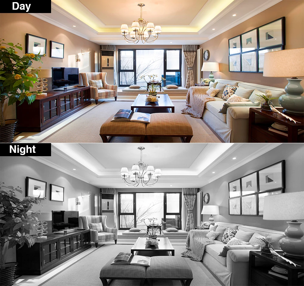 Умный фильтр, отсекающий ИК-спектр автоматически переключается между днем и ночью, чтобы уменьшить цвет в дневное время и повысить яркость изображения ночью, убедившись, что вы можете получить яркие кадры наблюдения от рассвета до темноты.