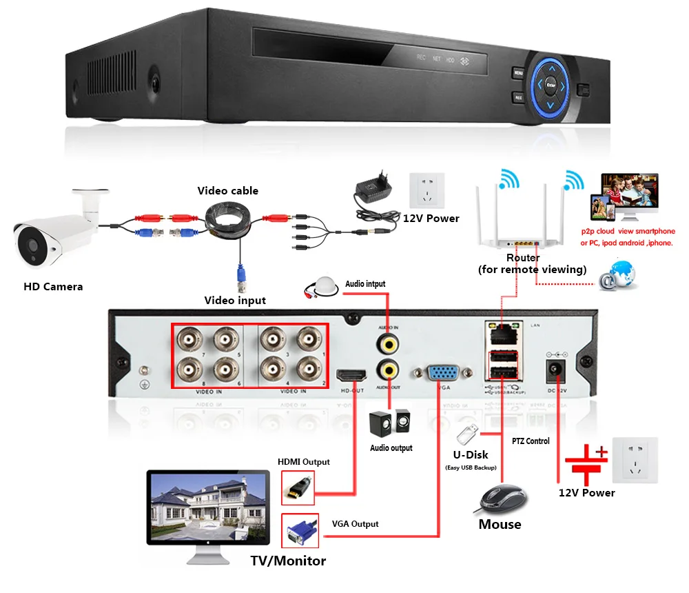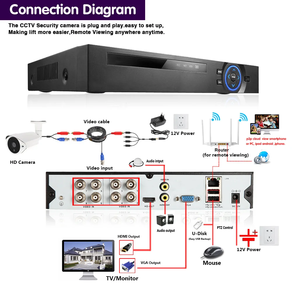 Простая настройка, всего 4 шага для просмотра мобильный телефон, просмотра видео в режиме реального времени из любого места и в любое время с помощью смартфона, стола или ПК с передовой технологией P2P, вы можете получить удаленный доступ к вашей системе за считанные минуты или меньше, нет необходимости в переадресации, удаленный доступ никогда не был таким простым