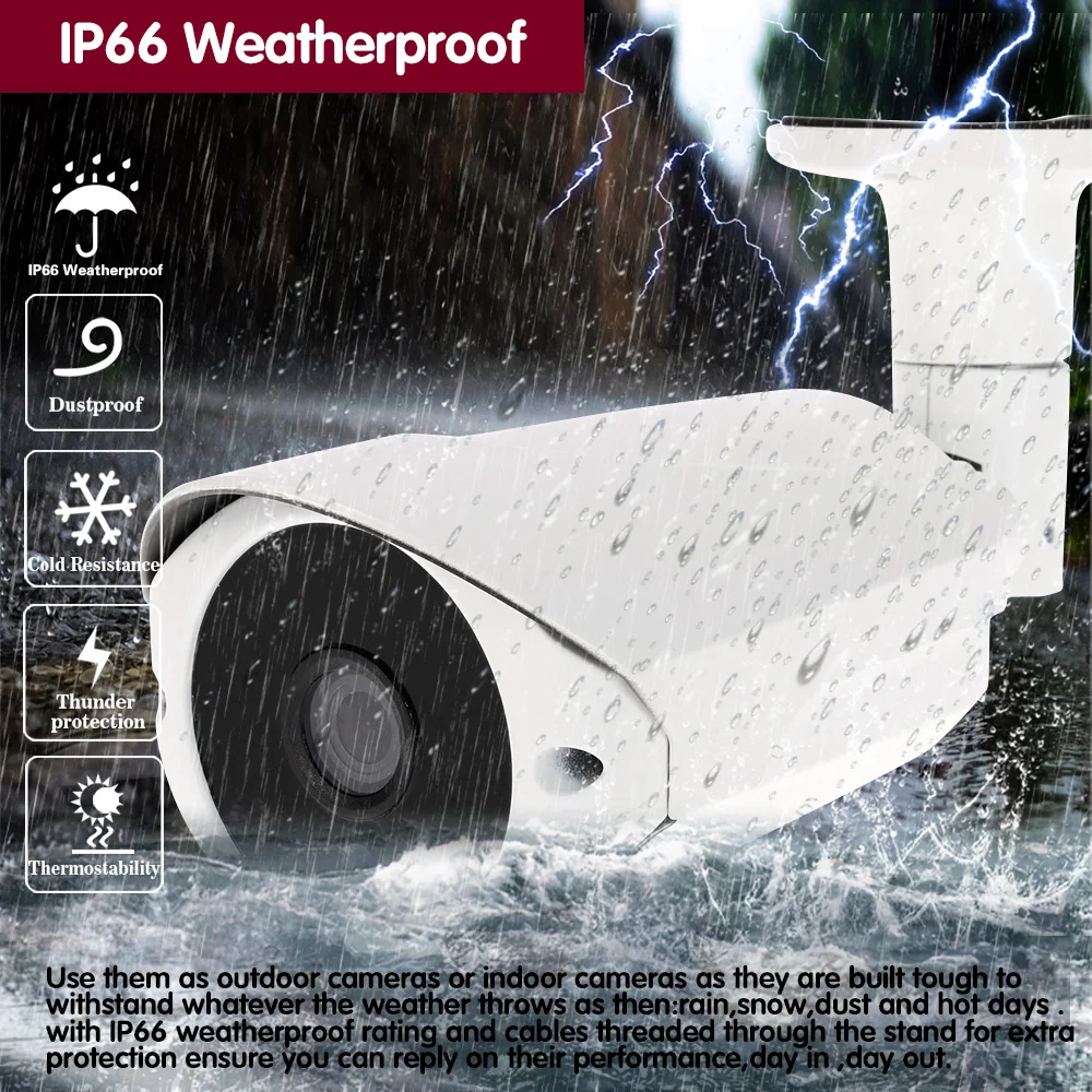 Используйте их в качестве наружных камер или внутренних камер, так как они построены жестко, чтобы выдерживать любую погоду: дождь, снег, пыль и жаркие дни. С защитой от атмосферных воздействий IP66 и кабелями, проходящими через подставку для дополнительной защиты, гарантируем, что вы сможете ответить на их производительность, день в день.Наша камера имеет сверхпрочный металлический корпус, профессиональный IP66, устойчивый к атмосферным воздействиям, обеспечивая стабильную производительность как внутри, так и снаружи.